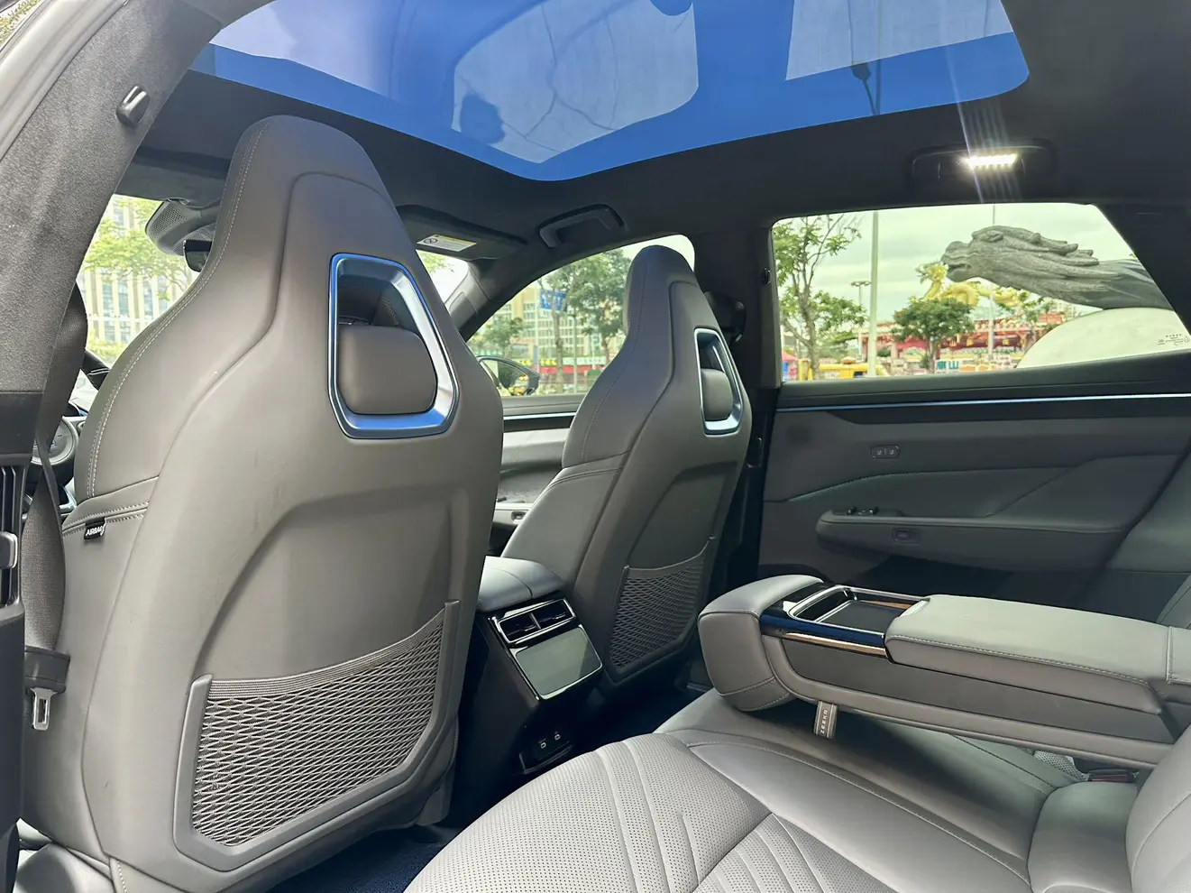 Оранжевый цвет кузова Yuguang (включая контрастную крышу), оранжево-серый салон (сиденья из искусственной замши и салон, обтянутый алькантарой), интеллектуальные дополнительные сиденья (18-позиционная электрическая регулировка для переднего ряда, включая