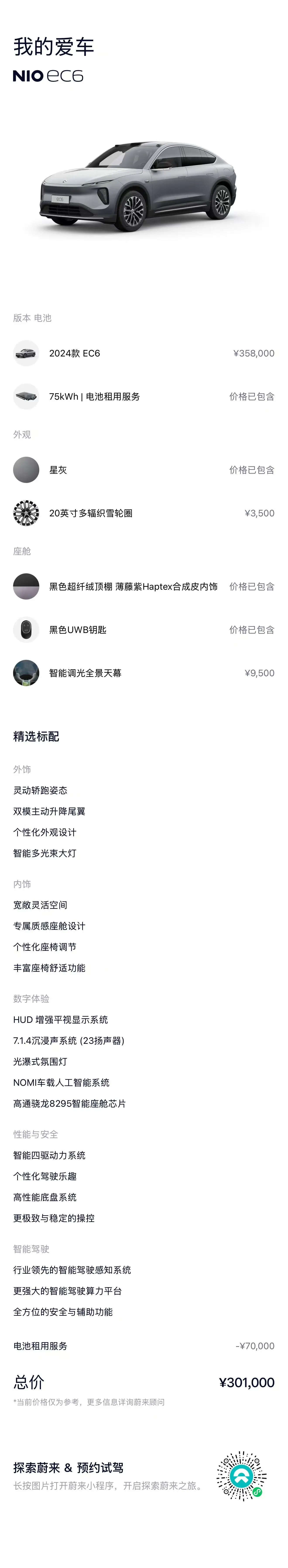 NIO EC6 model 75kWh, 2024 года 7 470 670 рублей