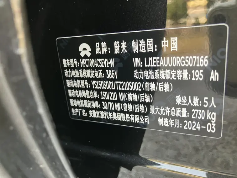 NIO ET5T model 75kWh, 2024 года 7 665 791 рублей