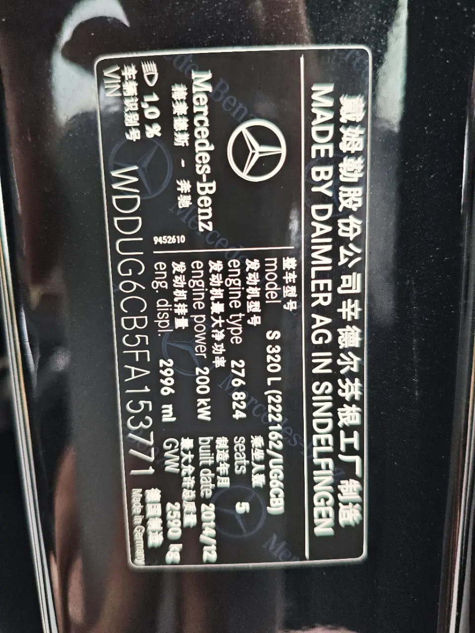 Mercedes-Benz S-Class 2014 S 320 L Business Edition