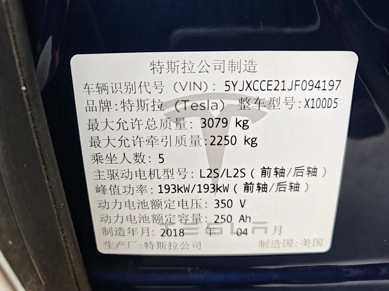 Tesla Model X Model X 2017 100D Long Range Edition, 2018 года 10 115 233 рублей