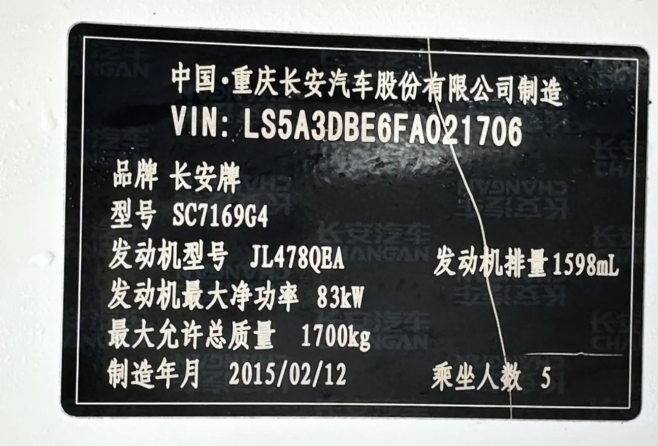 Changan Eado XT 1.6L Manual Junku Model IV, 2015 года 1 053 954 рублей