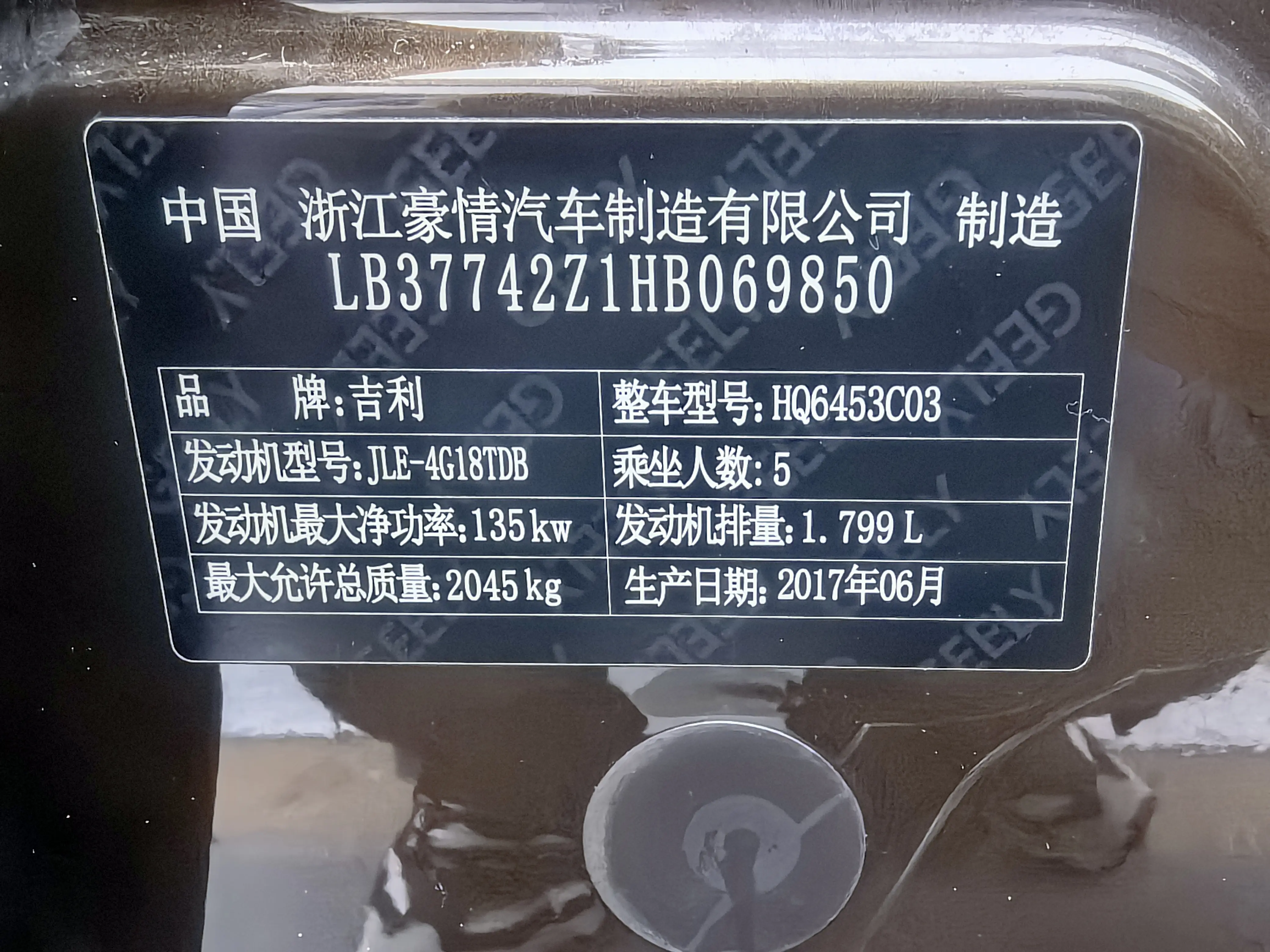 Geely Atlas (Boyue) Boyue 2016 1.8TD automatic intelligent connected model, 2017 года 2 827 520 рублей