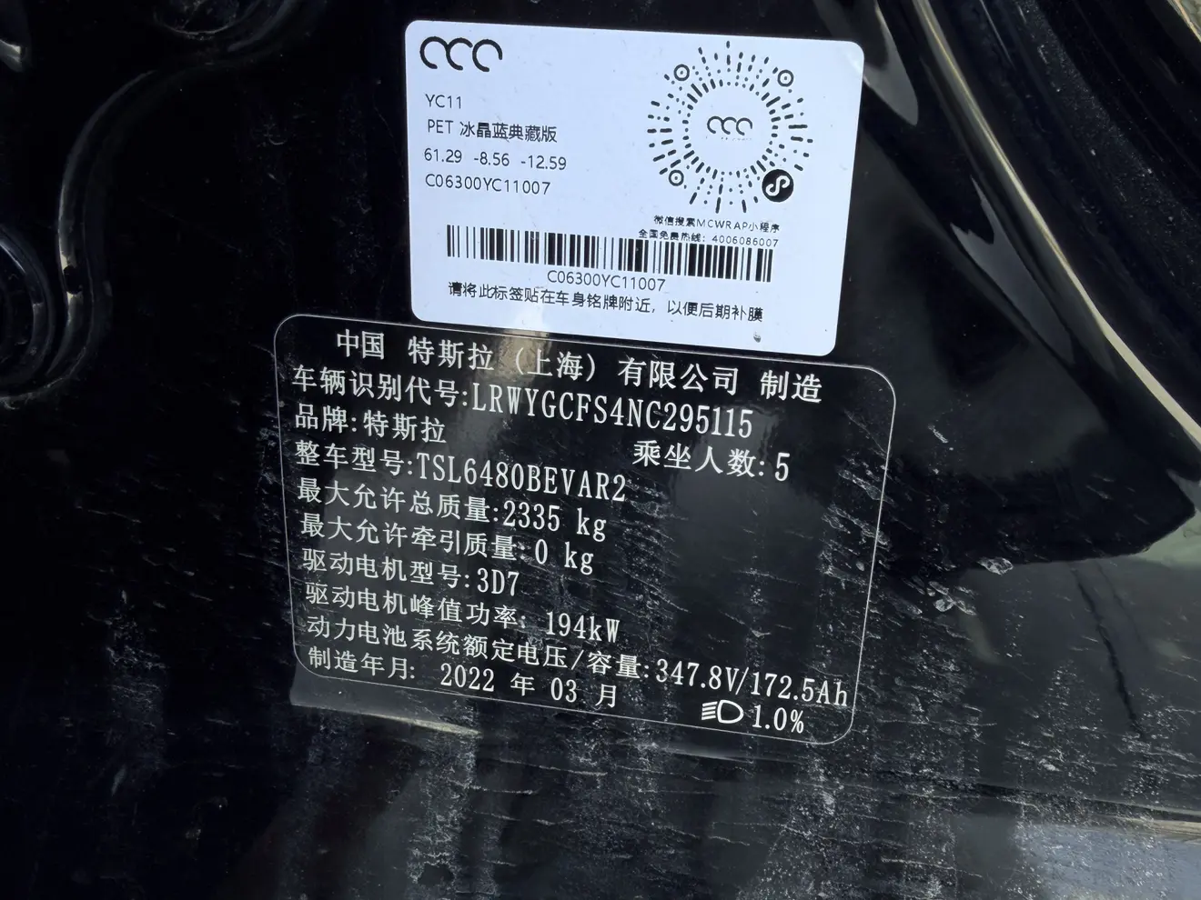 Model Y 2022 facelift rear-wheel drive version