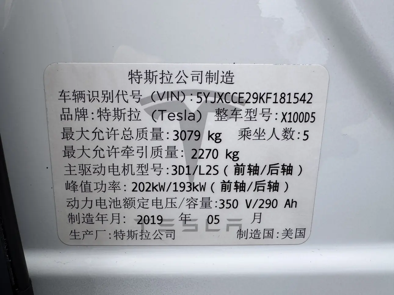 Tesla Model X Long Range Edition, 2019 года 9 965 261 рублей