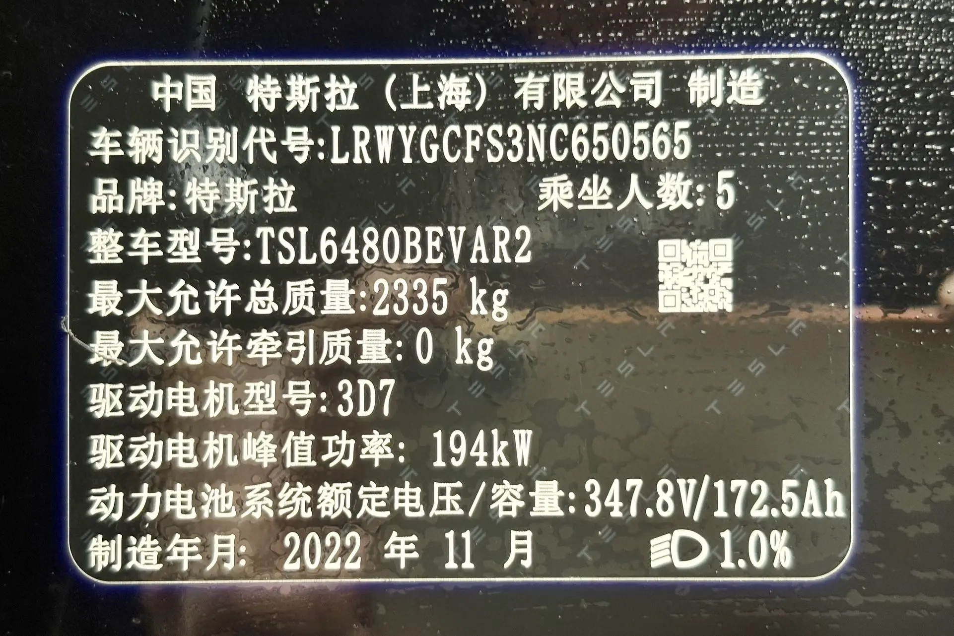 Model Y 2022 facelift rear-wheel drive version