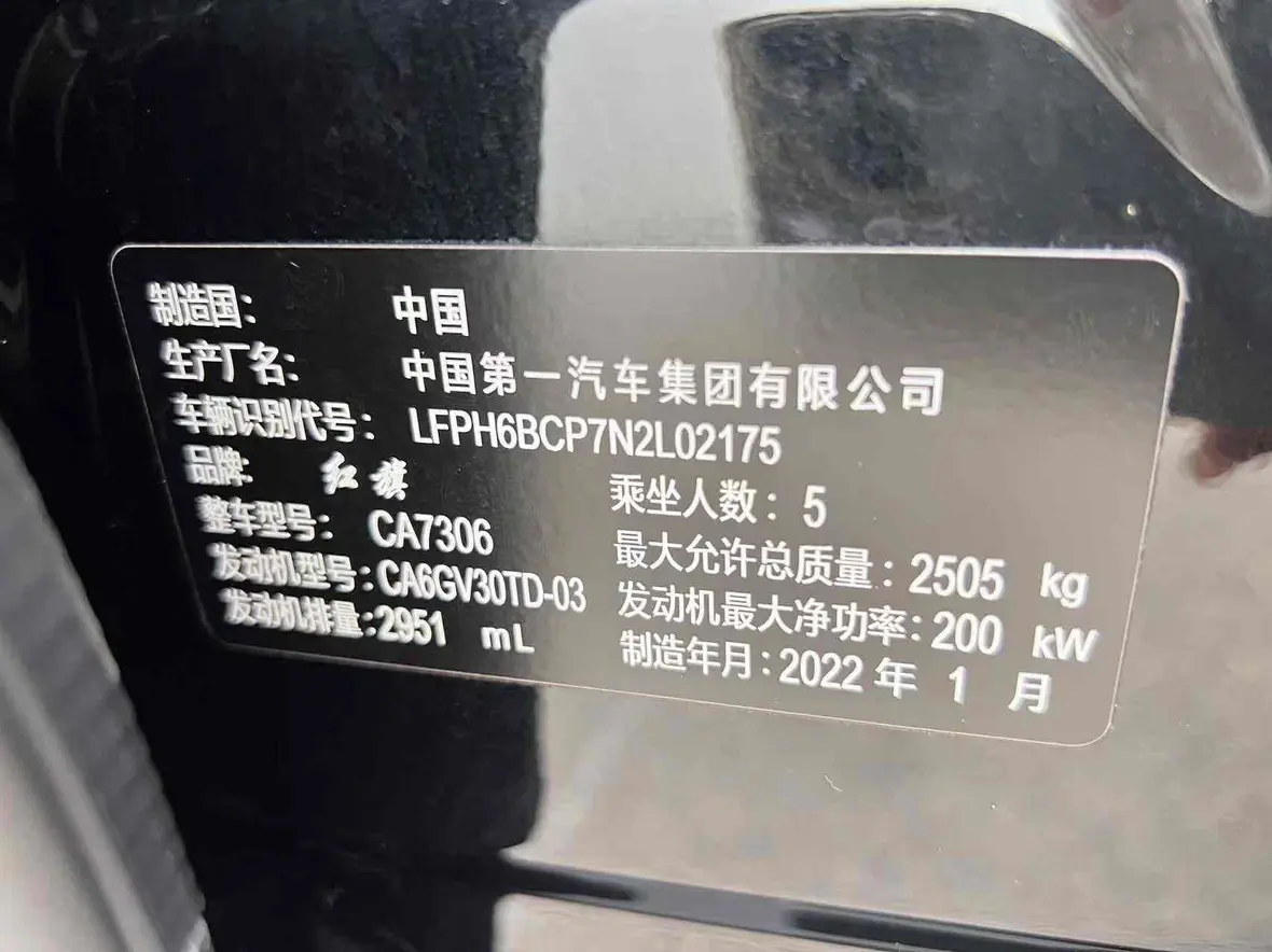 Hongqi H9 Hongqi H9 2022 3.0T Zhilian Qichang Edition, 2022 года 7 406 095 рублей