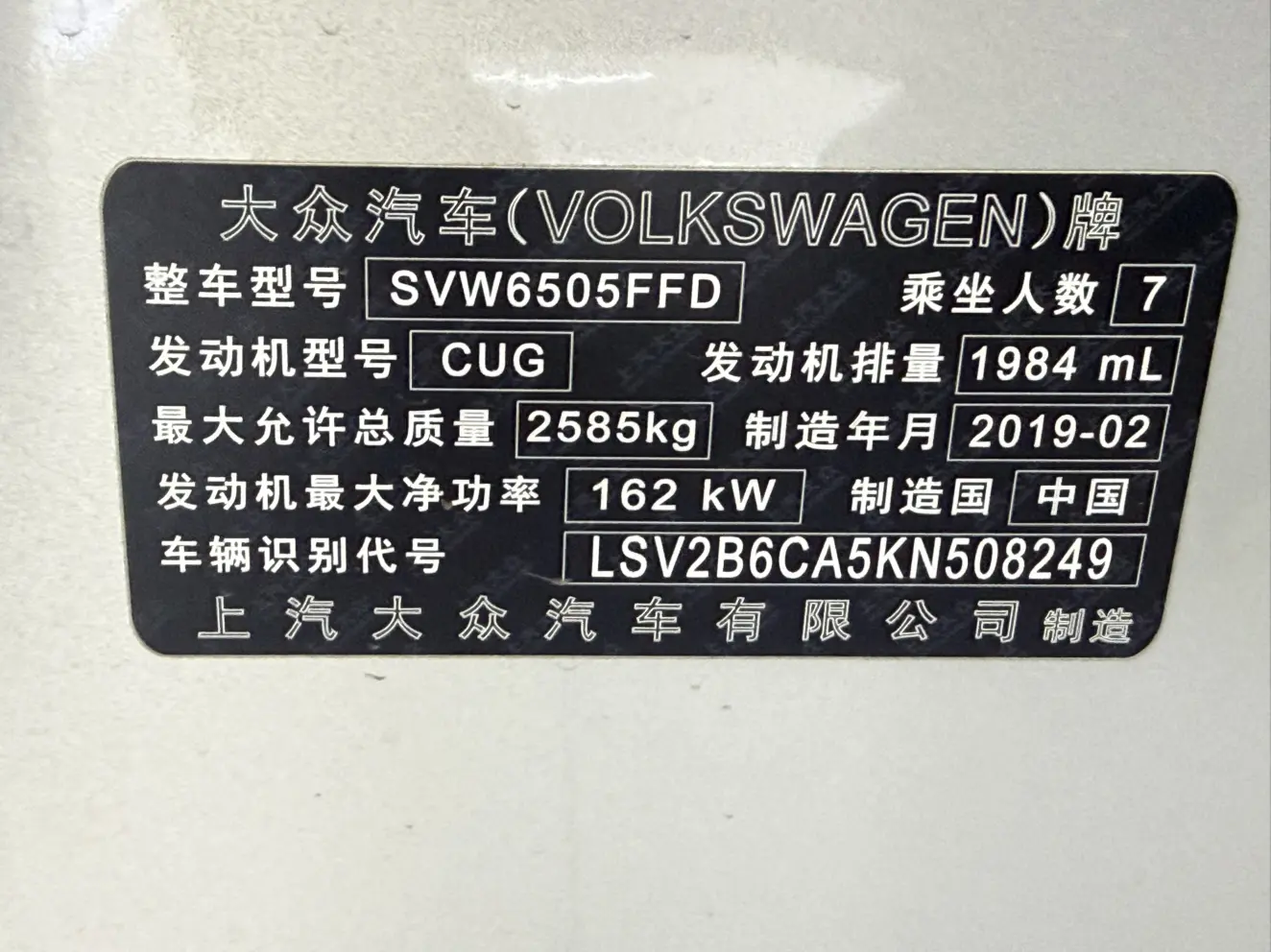 Volkswagen Teramont Touron 2019 380TSI four-wheel drive comfort version National V, 2019 года 4 420 420 рублей