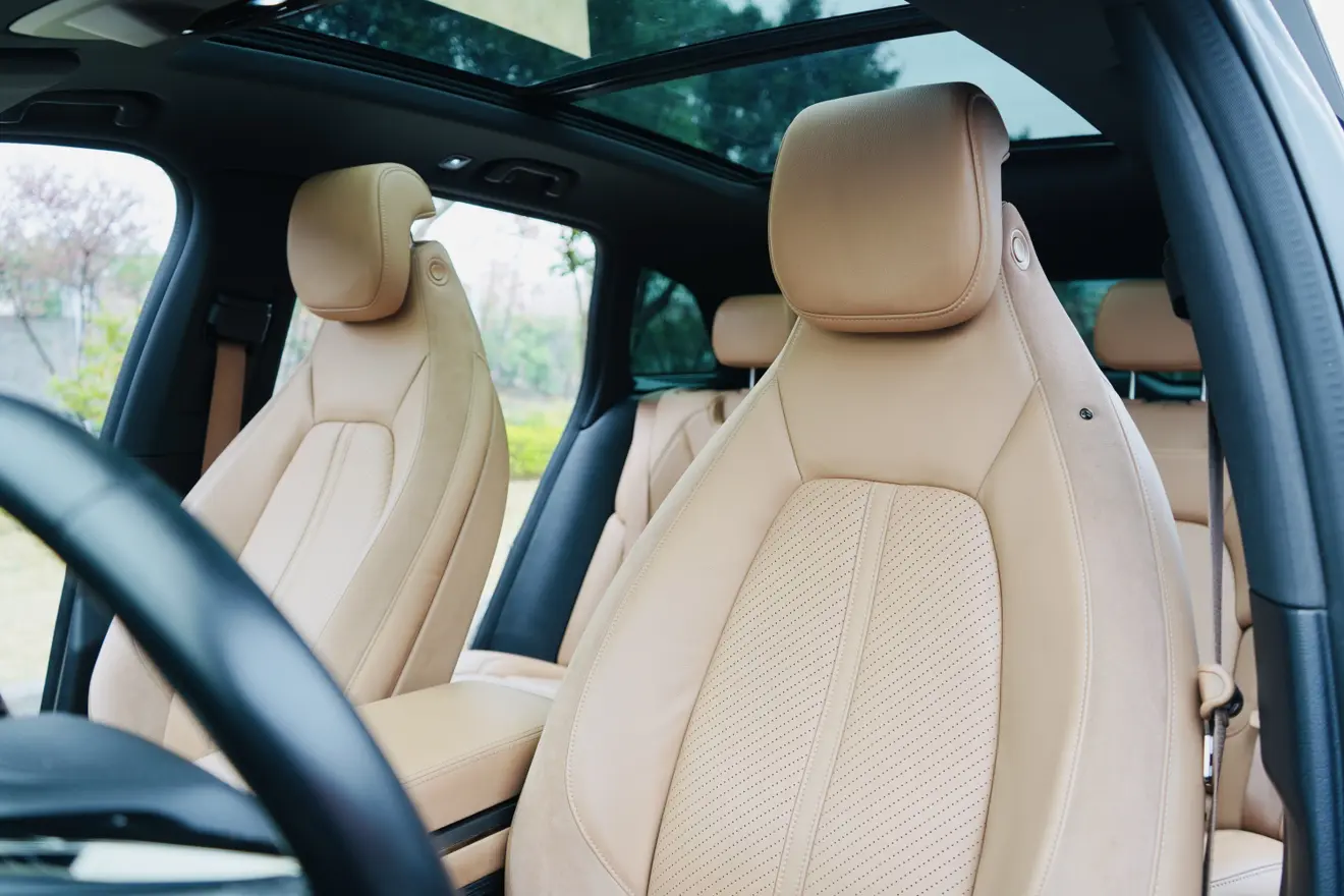 Массаж передних сидений, сиденья из высококачественной перфорированной кожи Nappa, отделка салона высококачественной кожей Nappa, бархатная обивка потолка из суперволокна из микрофибры.