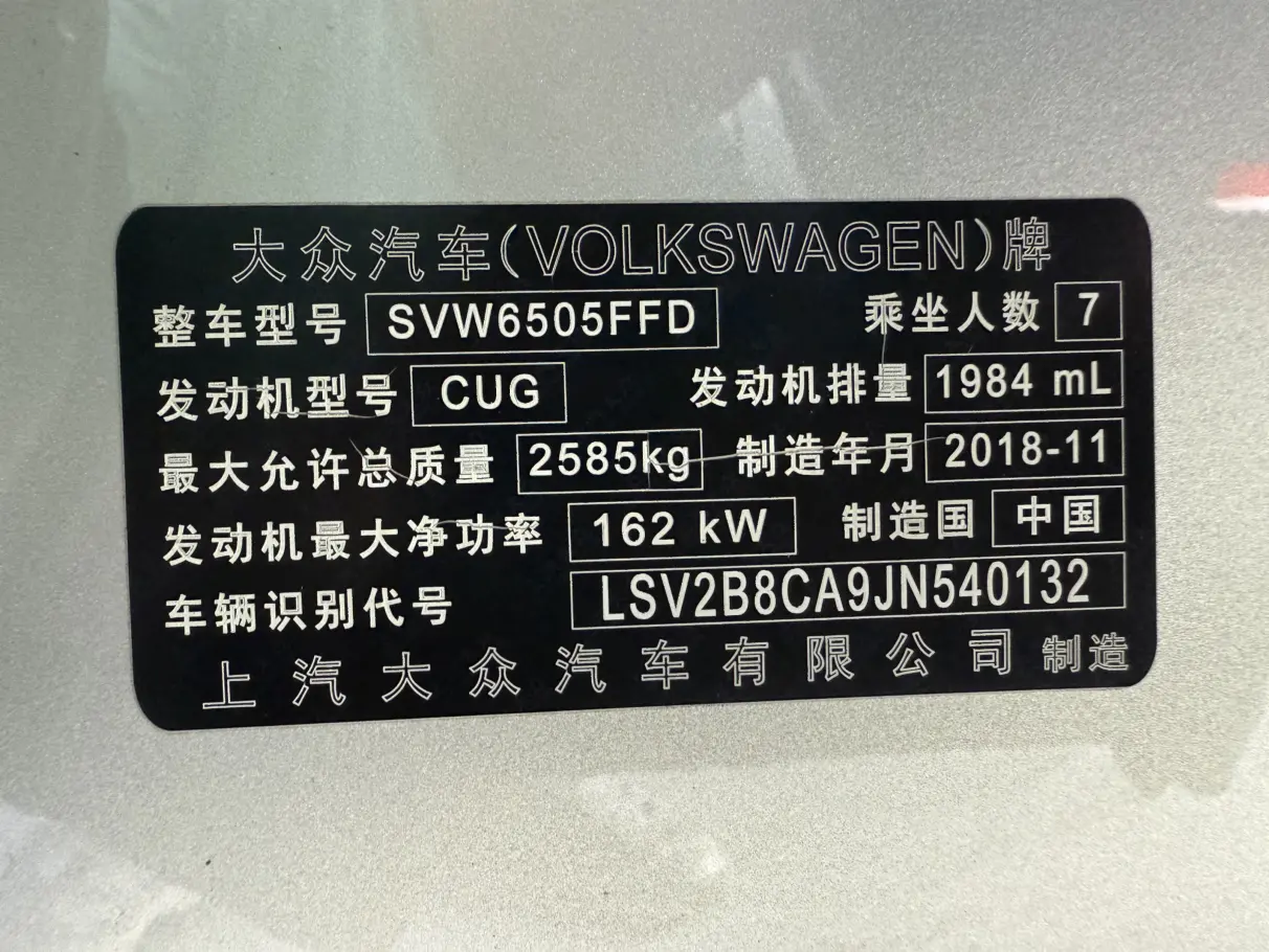 Volkswagen Teramont Touron 2019 380TSI four-wheel drive luxury version National V, 2019 года 4 669 157 рублей