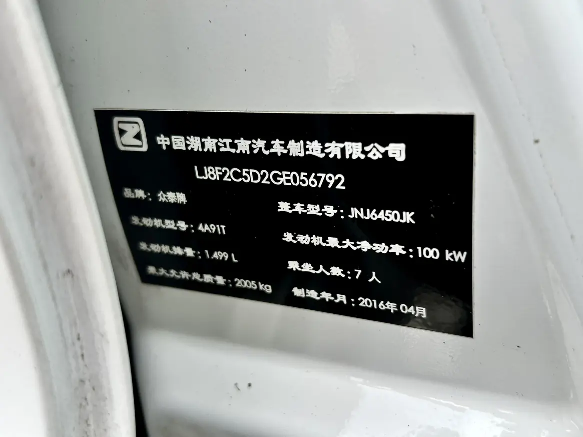 Zotye Damai X5 1.5T Manual Luxury 7 Seater National V, 2016 года 926 057 рублей