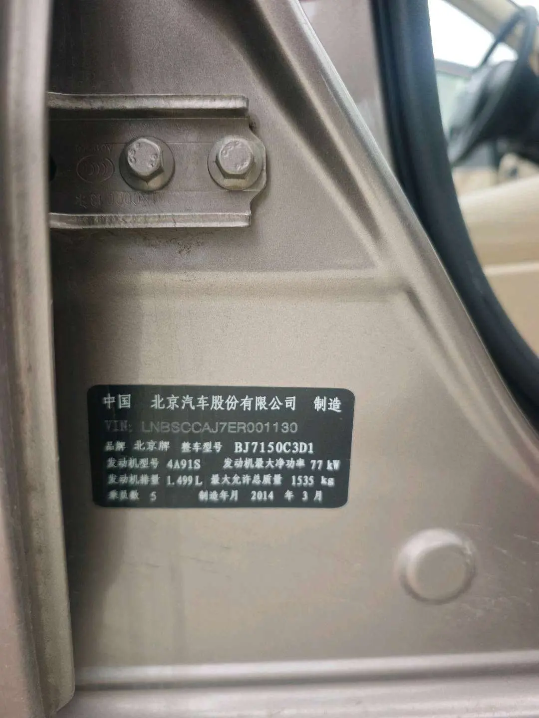 BAIC Motor E Series BAIC Motor E Series 2013 Sedan 1.5L Automatic Lotte Edition, 2015 года 948 218 рублей