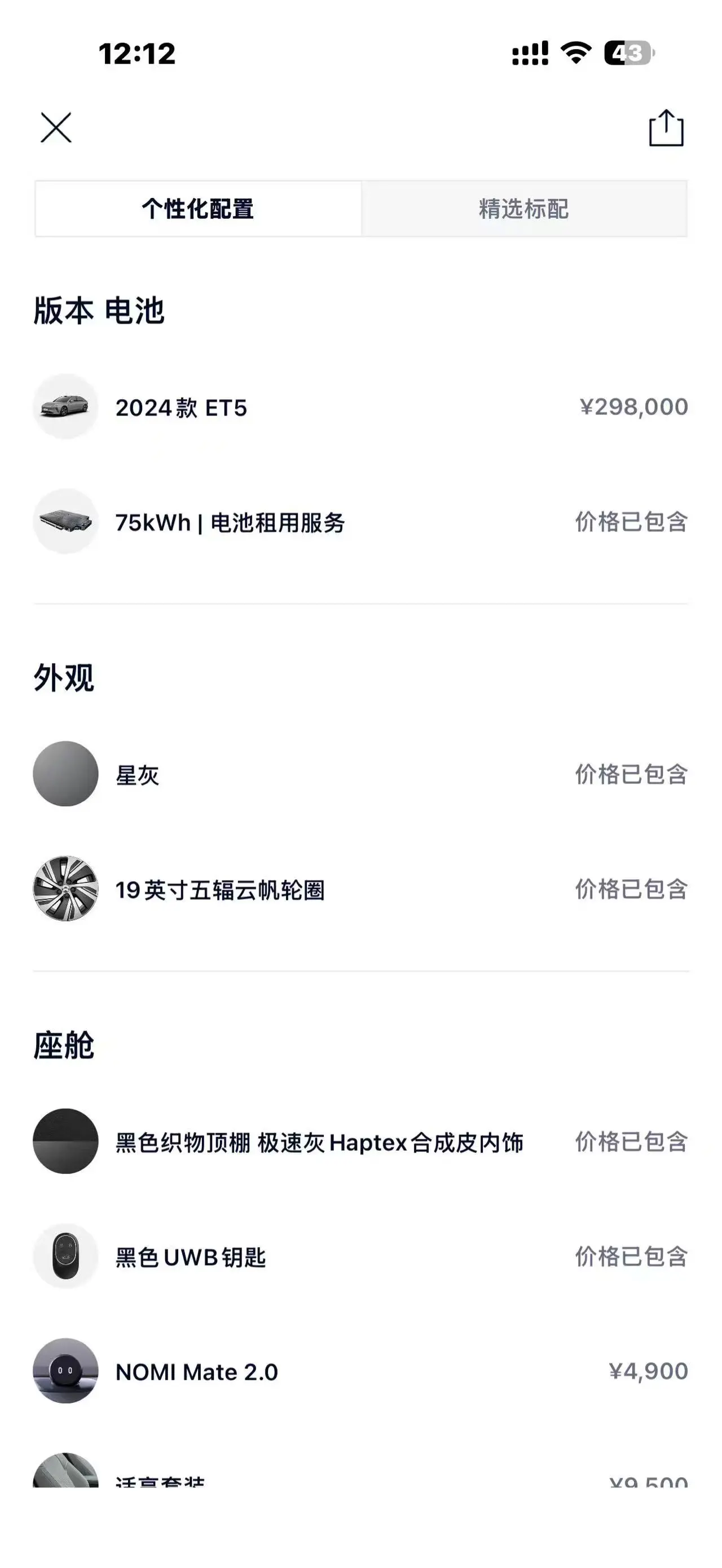 NIO ET5 model 75kWh, 2024 года 6 837 046 рублей