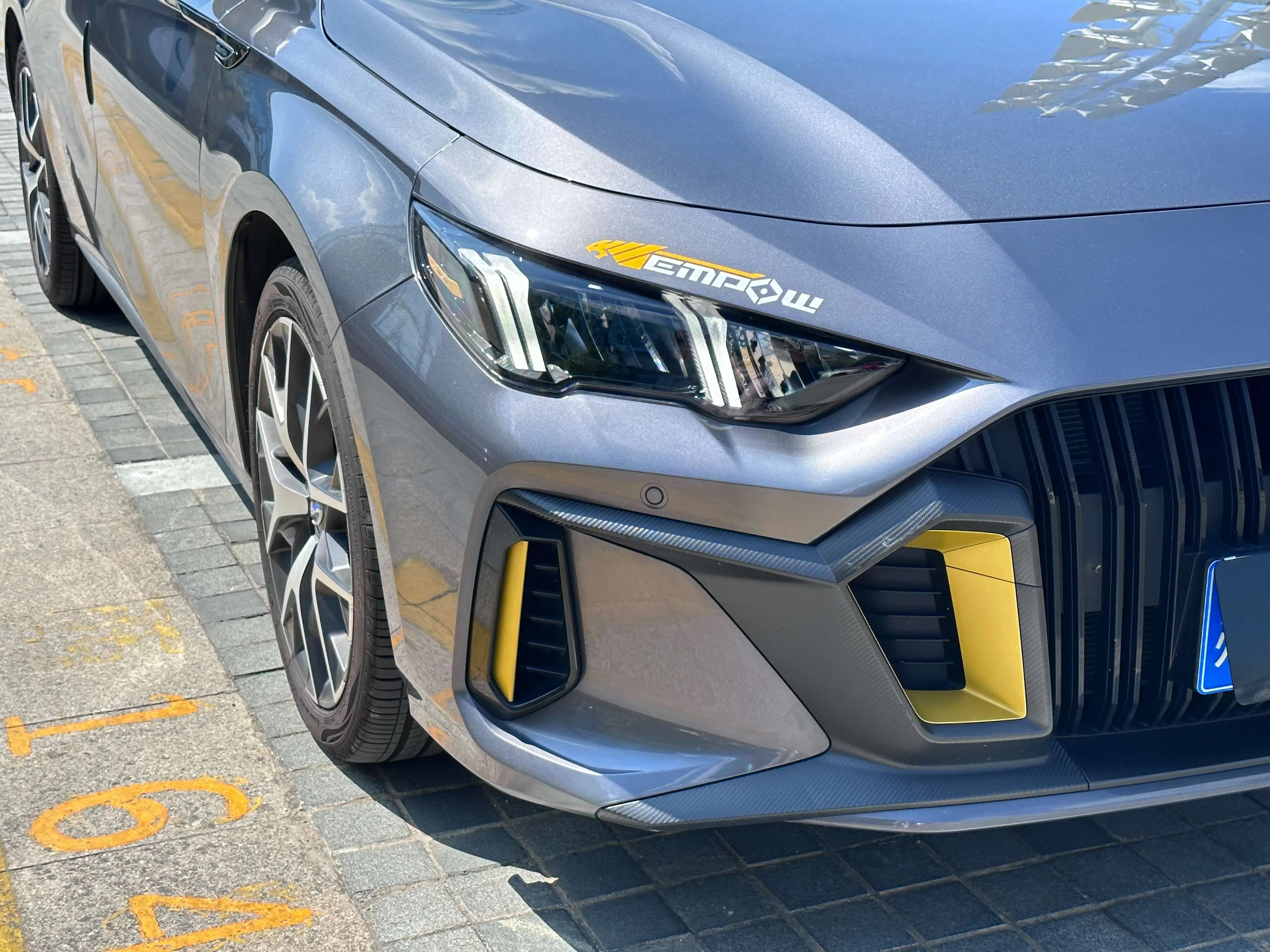 Полный комплект детонирующих синих деталей кузова, 18-дюймовые черненные диски (с детонирующими синими кольцами), высокопроизводительные шины Michelin.