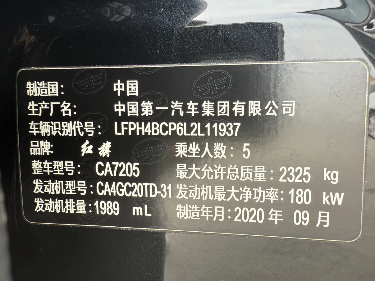 Hongqi H9 2.0T Intelligent Connection Flagship Edition, 2020 года 4 939 068 рублей