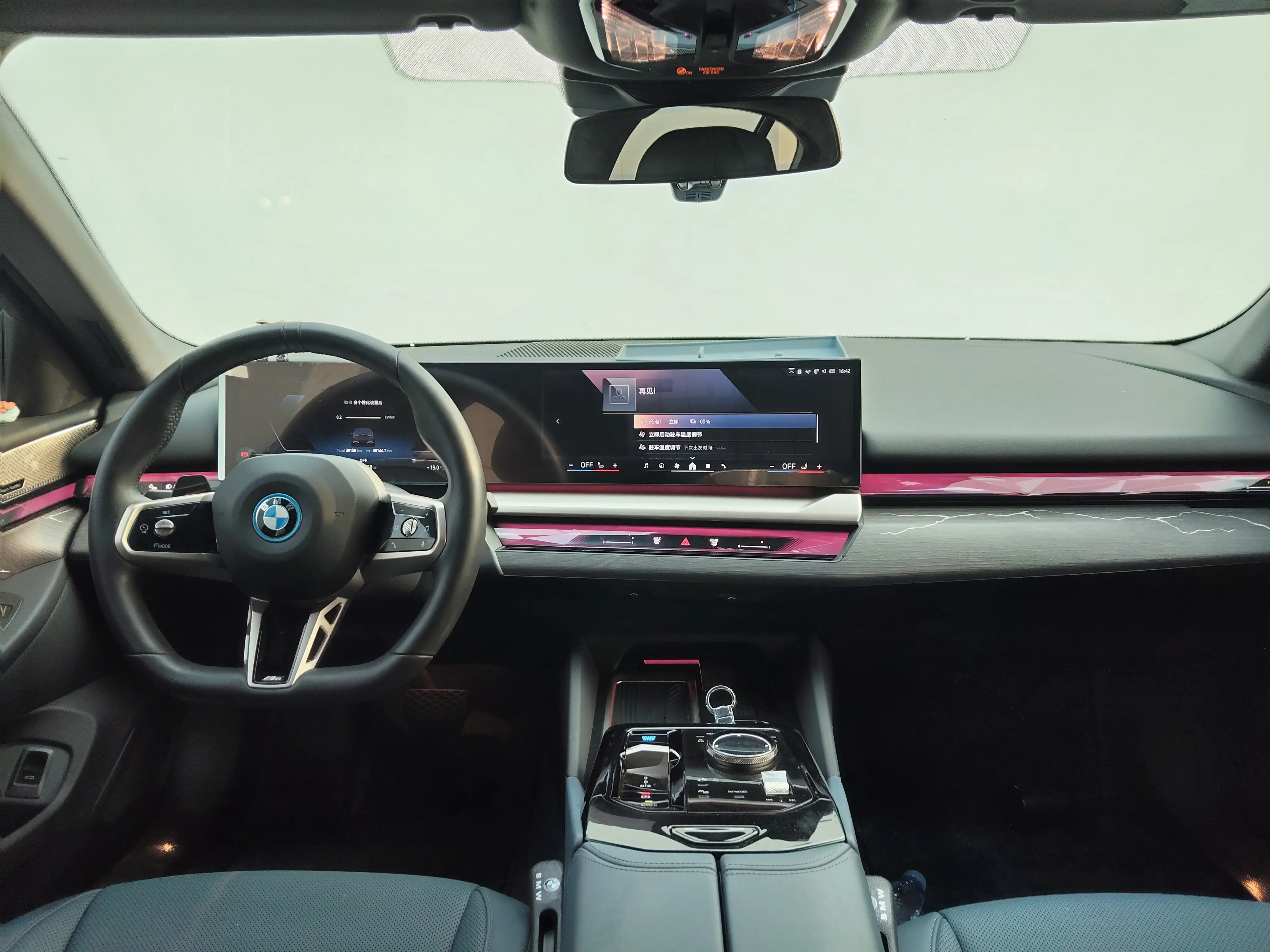 Интеллектуальная взаимосвязанная кабина (включая полноцветный проекционный дисплей), подвесной гигантский экран BMW, возможности сети 5G, усовершенствованная четырехзонная автоматическая система кондиционирования воздуха.