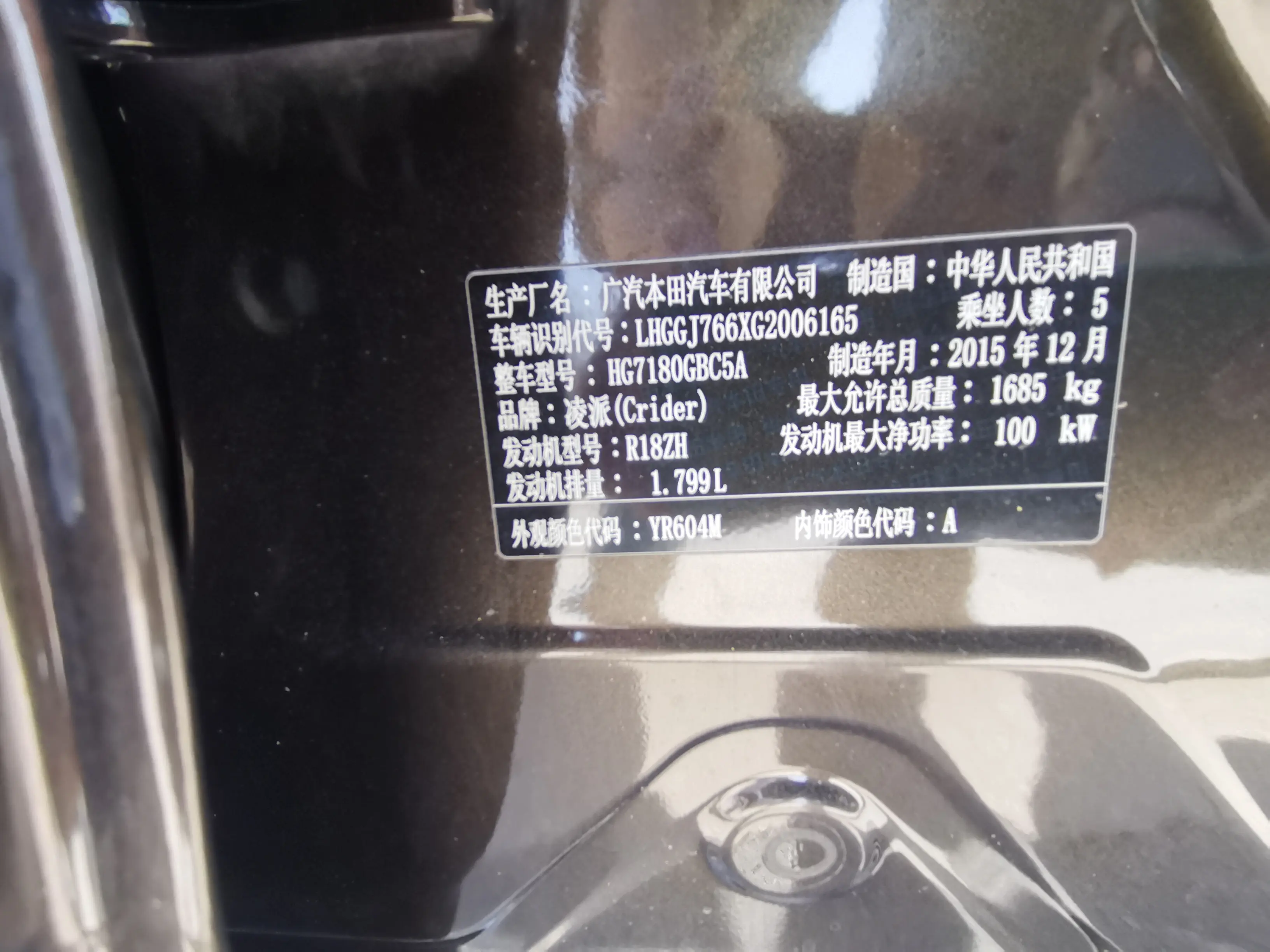 Honda Crider (Lingpai) Lingpai 2016 1.8L CVT Deluxe Edition, 2016 года 1 408 521 рублей