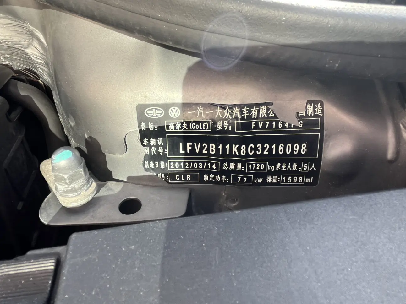 Volkswagen Golf 1.6 manual comfort type, 2012 года 1 157 708 рублей