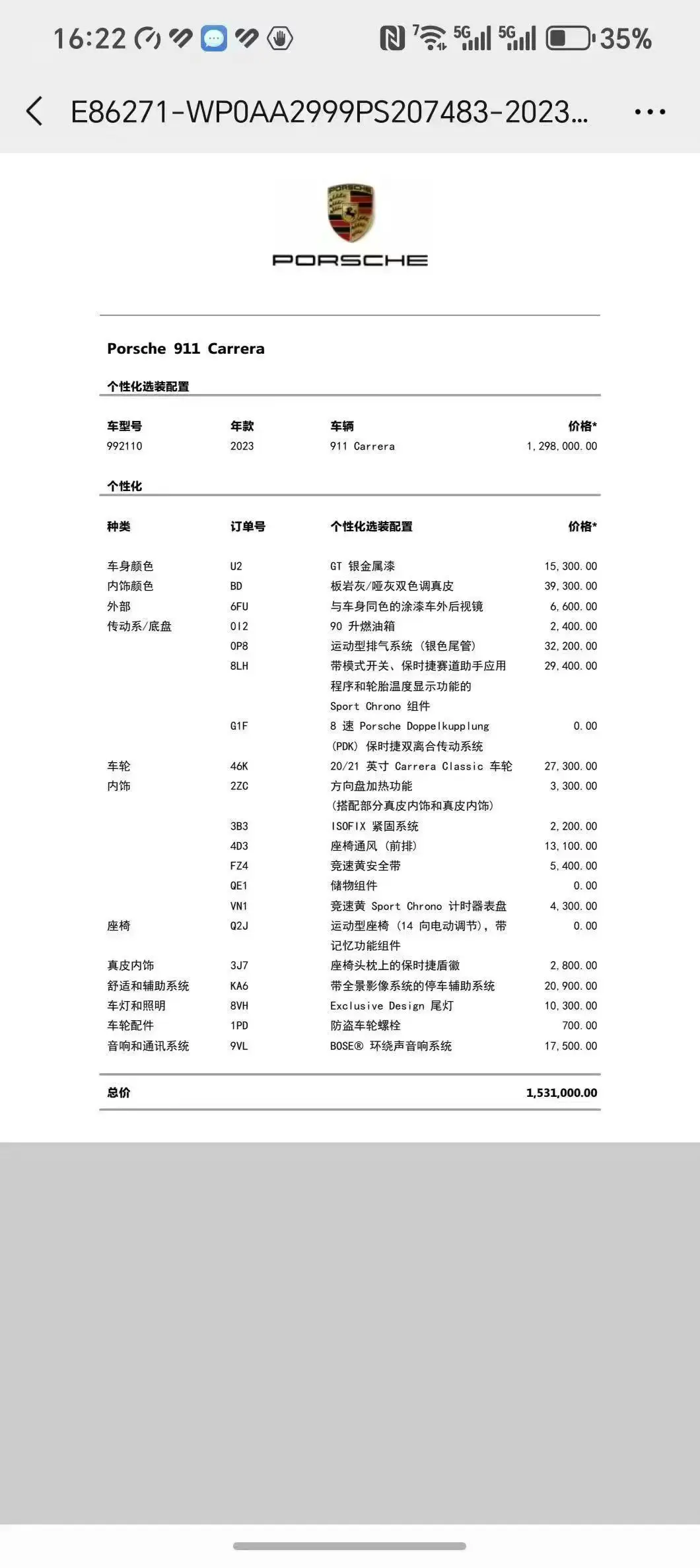 Комплектация: Porsche 911 2023 Carrera 3.0T