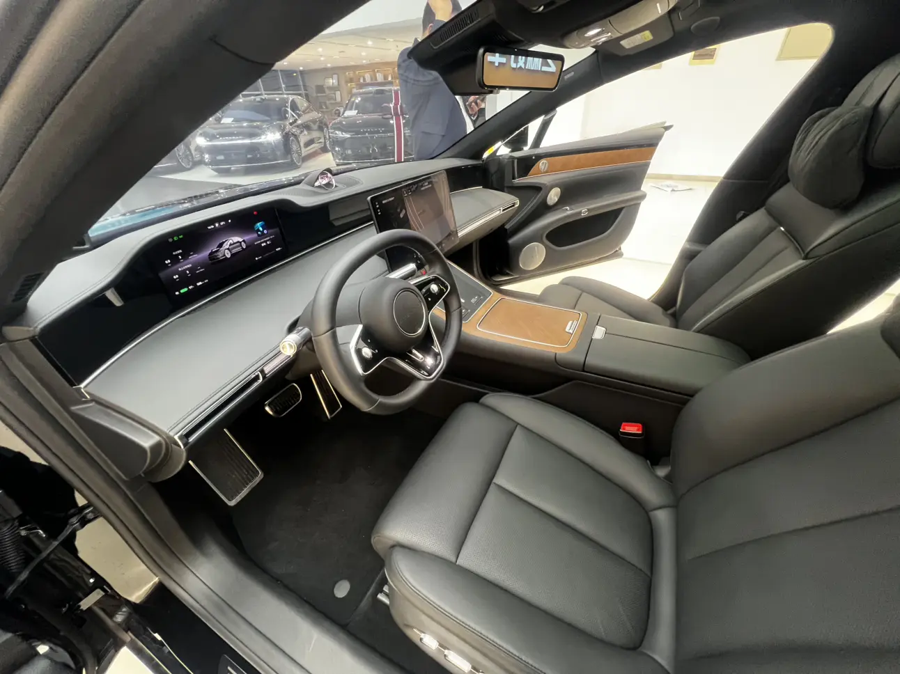Отделка из настоящего дерева + поддержка бедер водителя и пассажира + электропривод задних сидений на 43 градуса + экран в подлокотнике сзади + интеллектуальный подогрев и охлаждение + трехмерная система солнцезащитных шторок + вентиляция/подогрев/массаж
