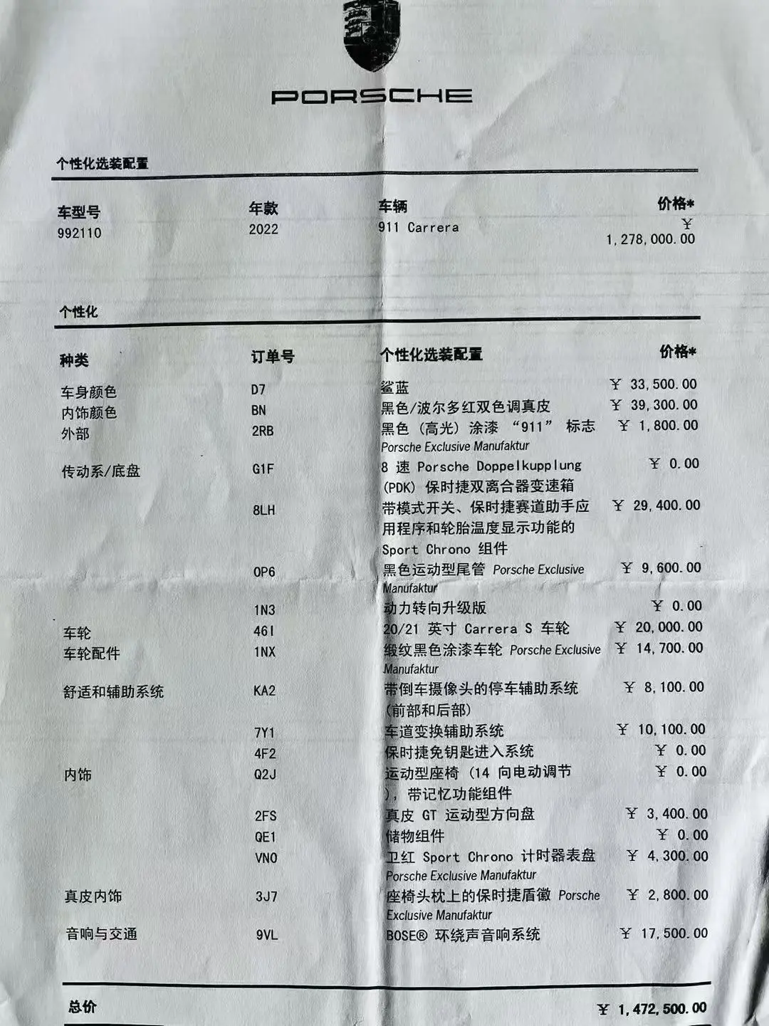 Комплектация: Porsche 911 2022 Carrera 3.0T