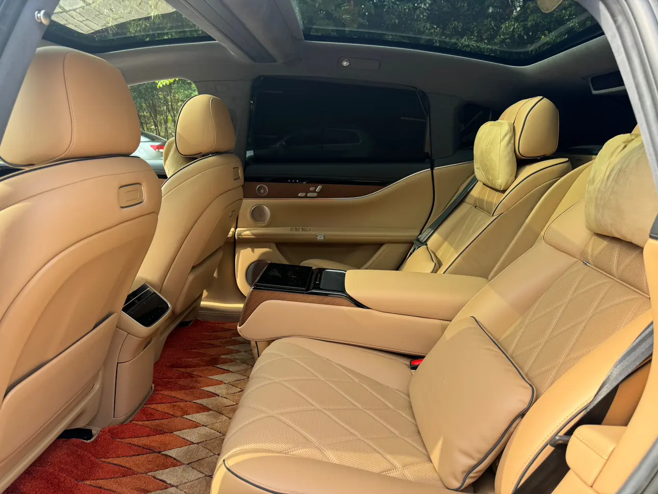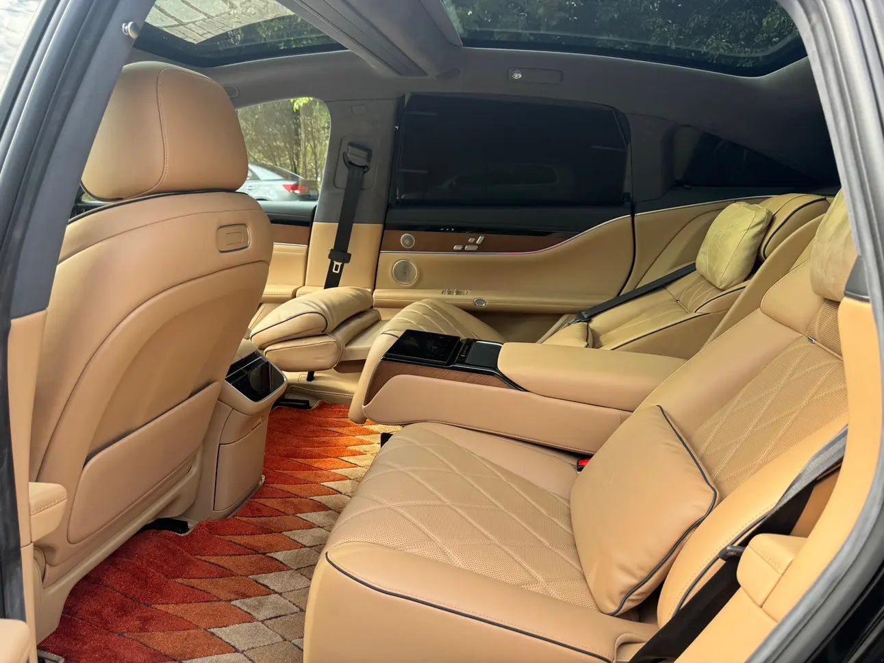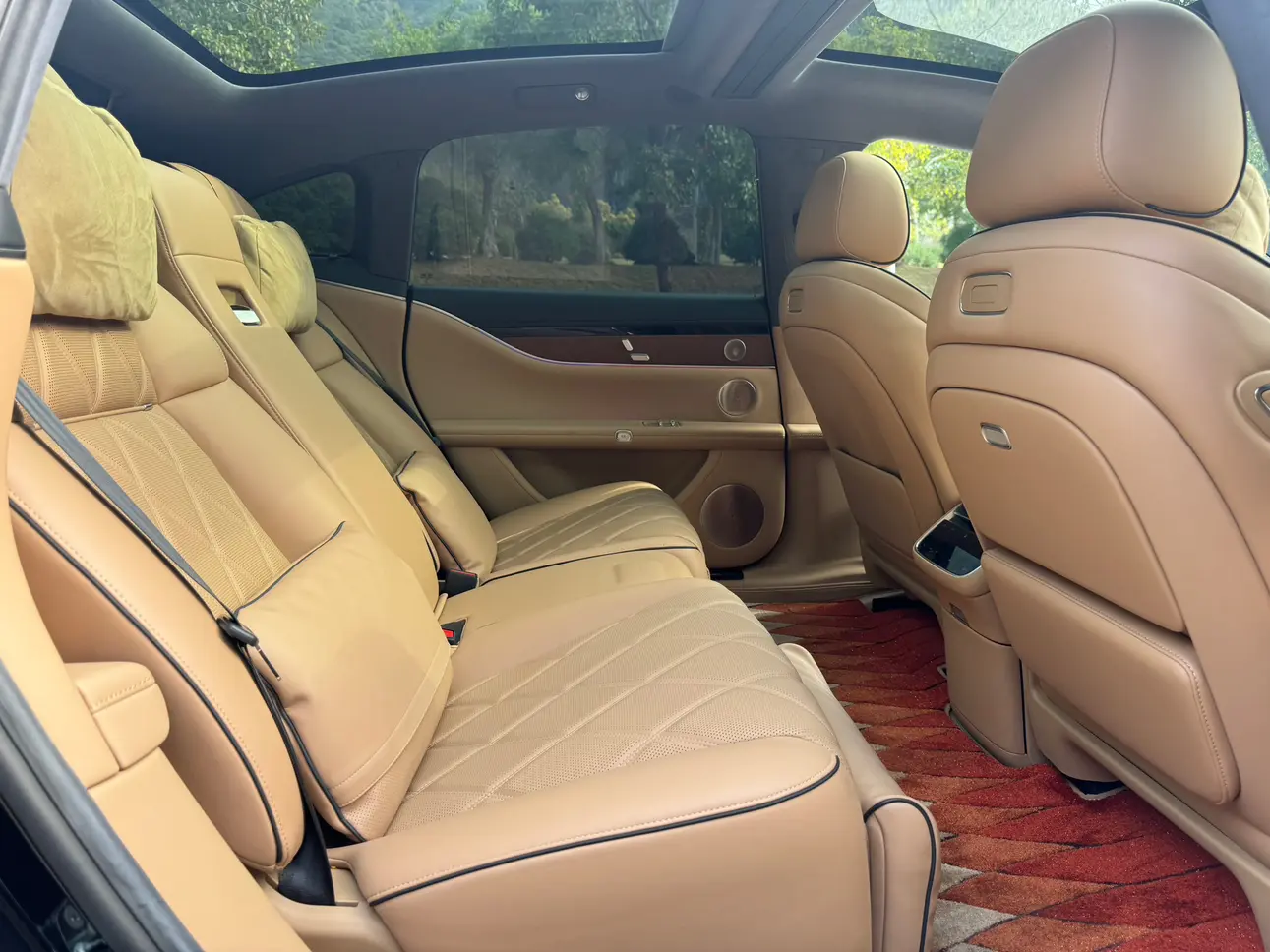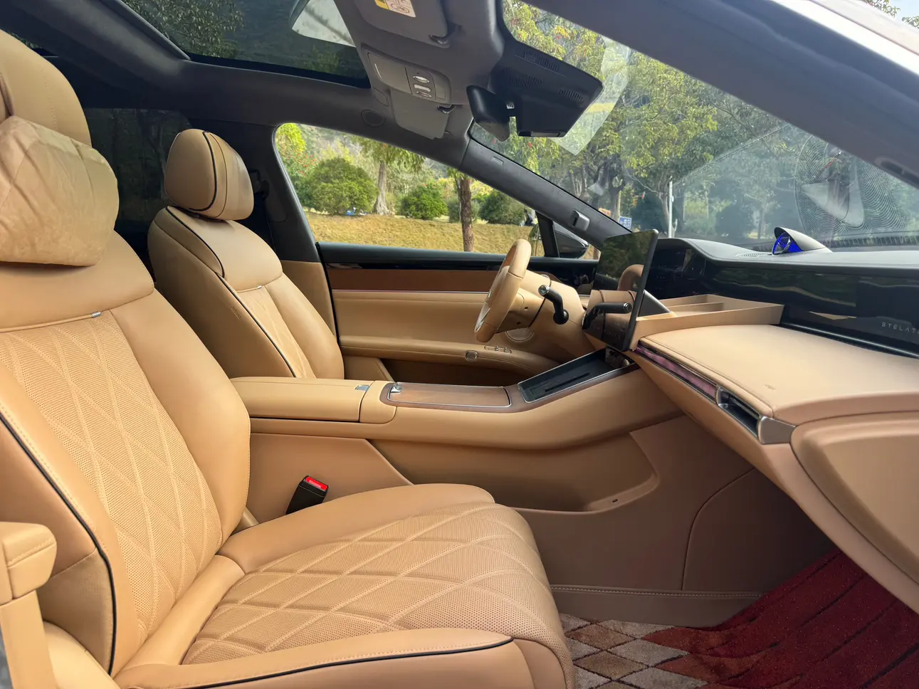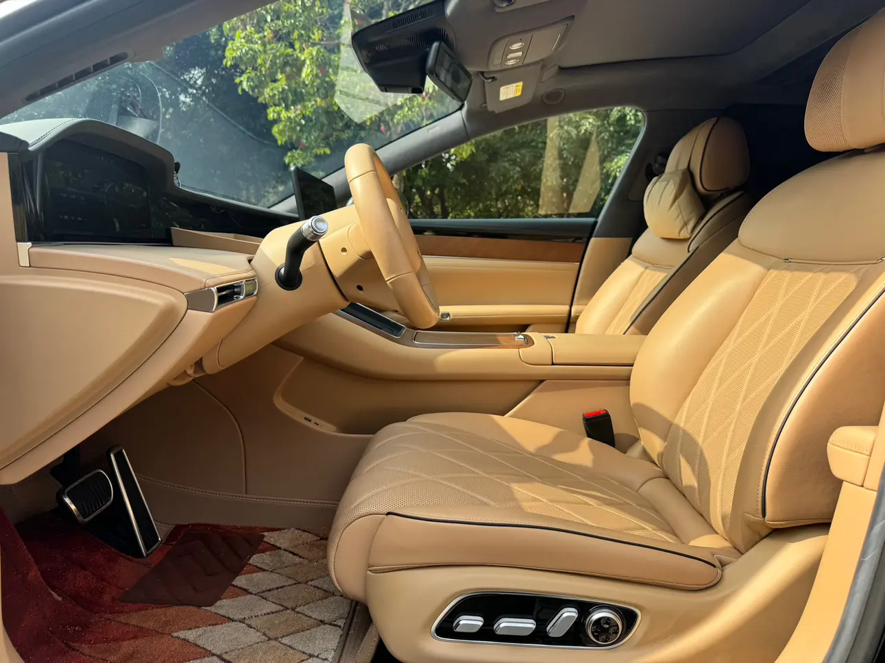Отделка из настоящего дерева + поддержка бедер водителя и пассажира + электропривод задних сидений на 43 градуса + экран в подлокотнике сзади + интеллектуальный подогрев и охлаждение + трехмерная система солнцезащитных шторок + вентиляция/подогрев/массаж
