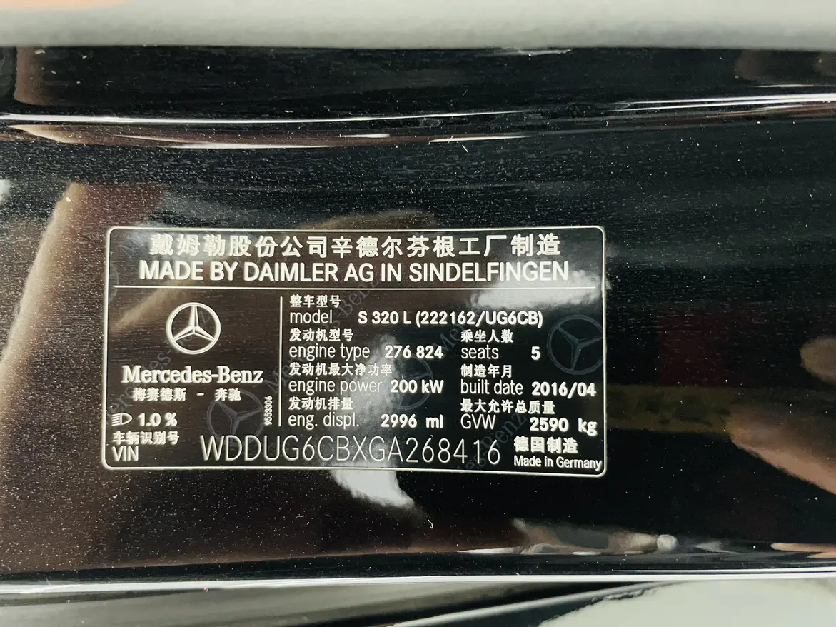 Mercedes-Benz Mercedes Benz S Class S 320 L Business Edition, 2016 года 8 808 849 рублей