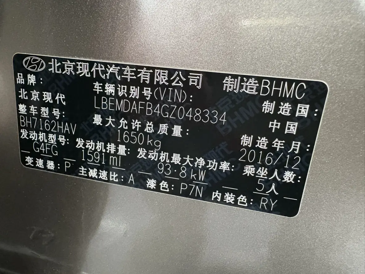 Hyundai Langdong 1.6L automatic intelligent model, 2017 года 1 262 909 рублей