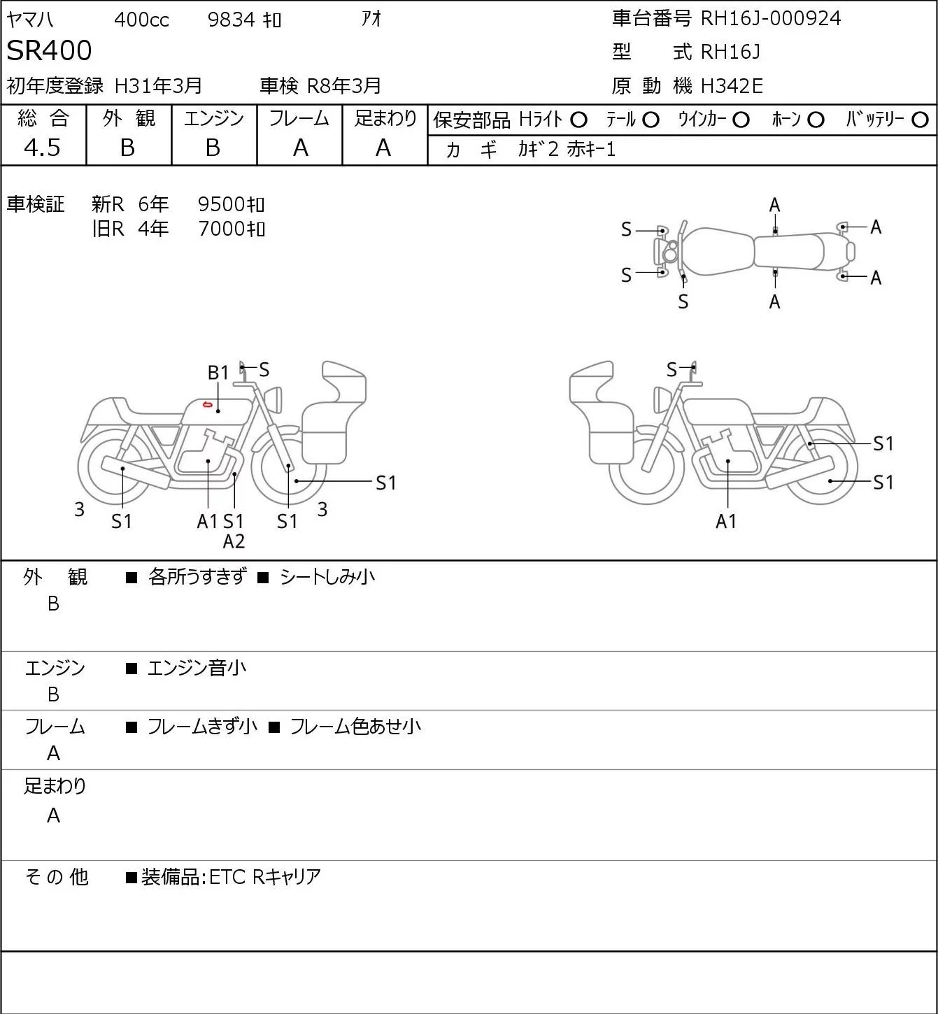 Yamaha SR400-1 с аукциона Японии JBA Kobe (Tuesday) лот № 5112