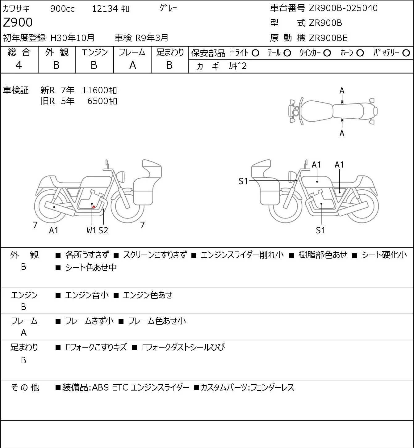 Kawasaki Z900 с аукциона Японии JBA Kobe (Tuesday) лот № 5108