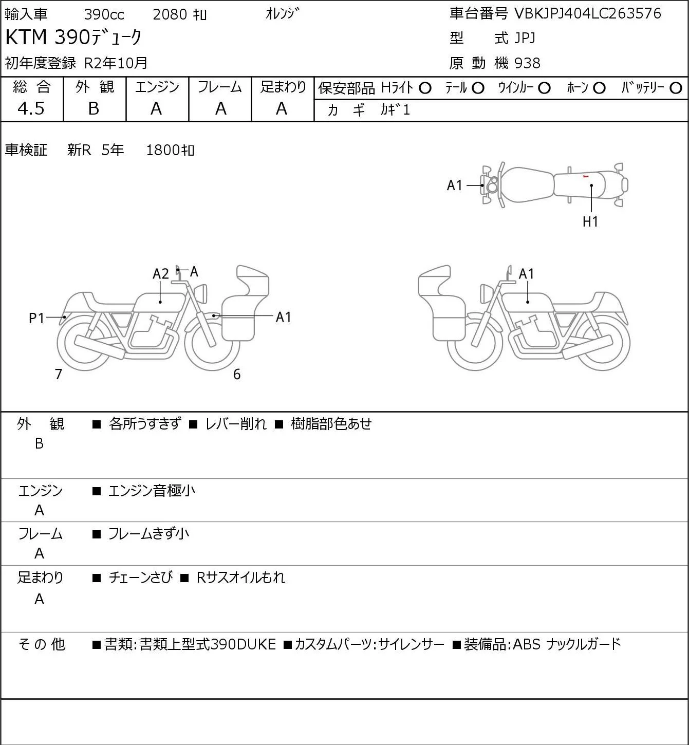 KTM 390 DUKE с аукциона Японии JBA Yokohama (Friday) лот № 8074