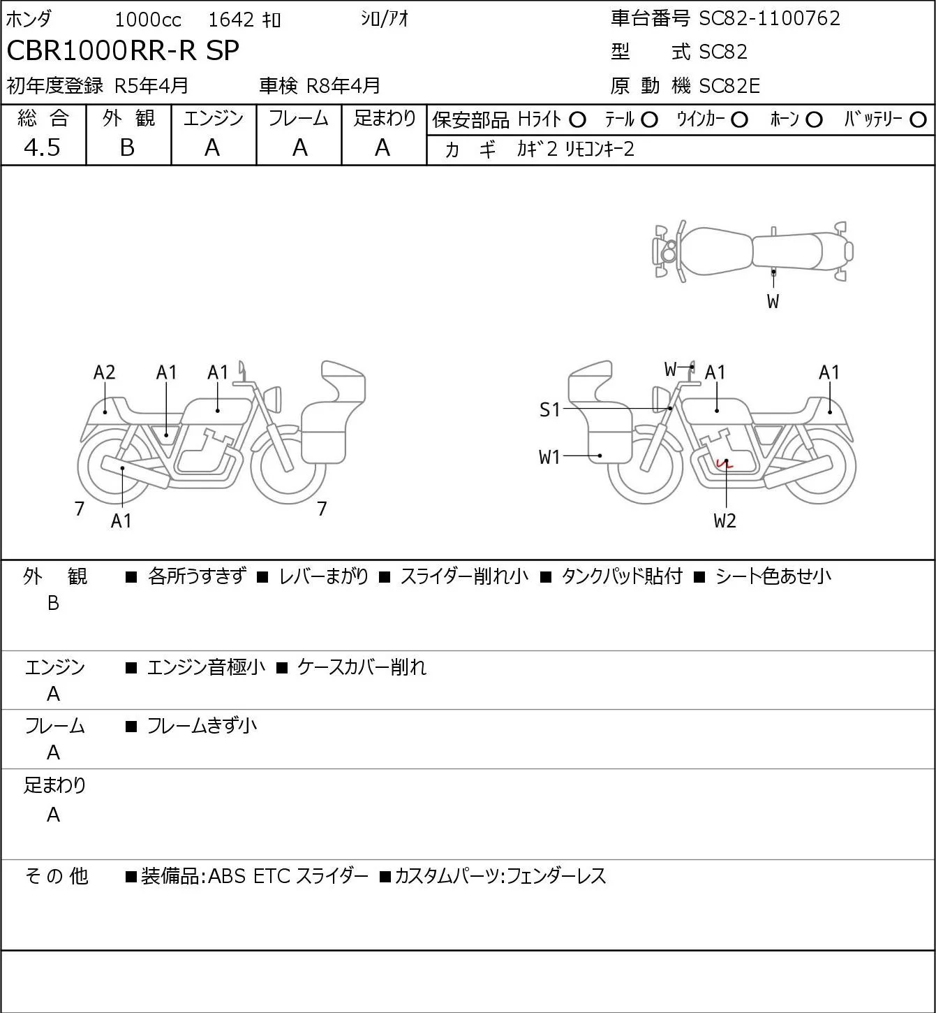 Honda CBR1000RR-R SP с аукциона Японии JBA Yokohama (Friday) лот № 7082