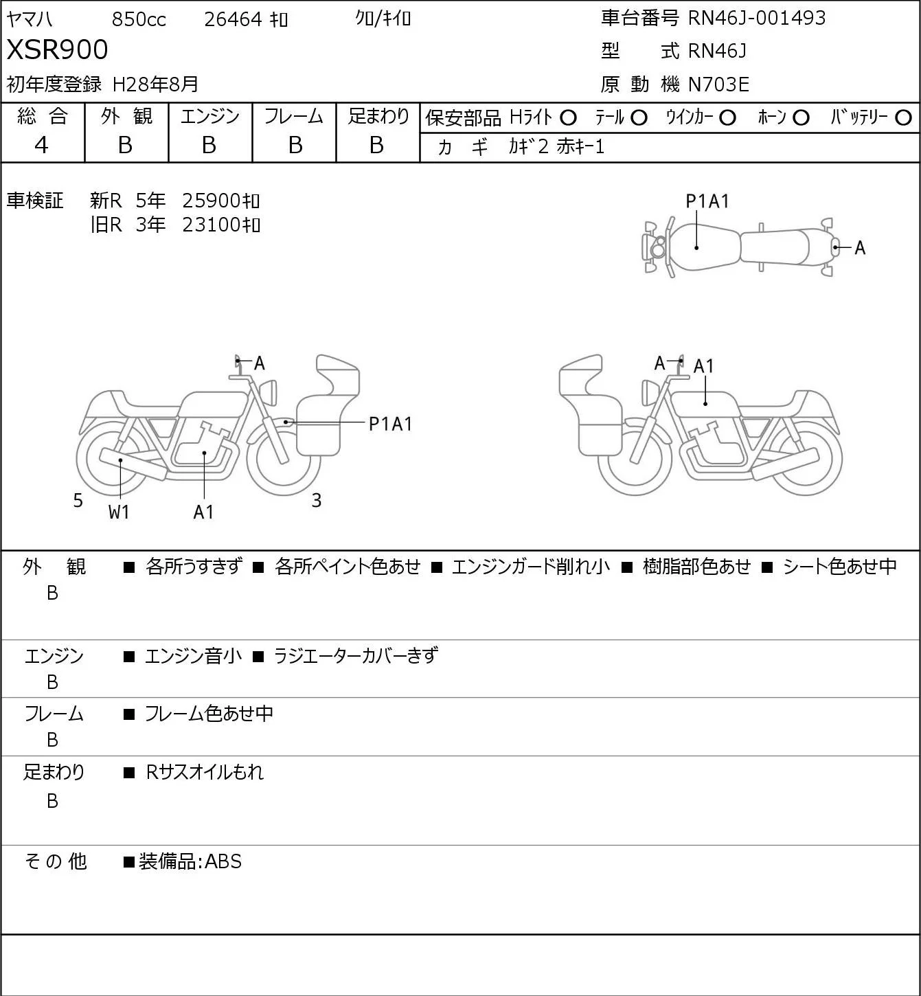 Yamaha XSR900 с аукциона Японии JBA Yokohama (Friday) лот № 8124