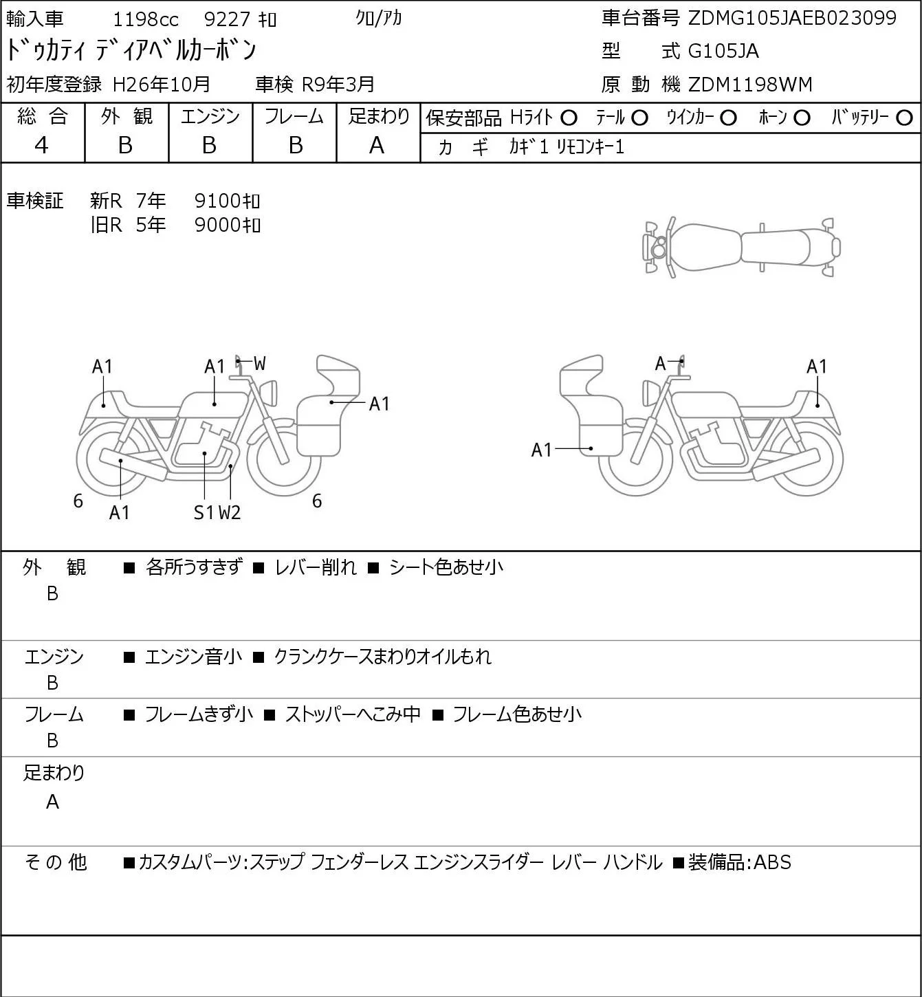 Ducati DIAVEL CARBON с аукциона Японии JBA Yokohama (Friday) лот № 7144