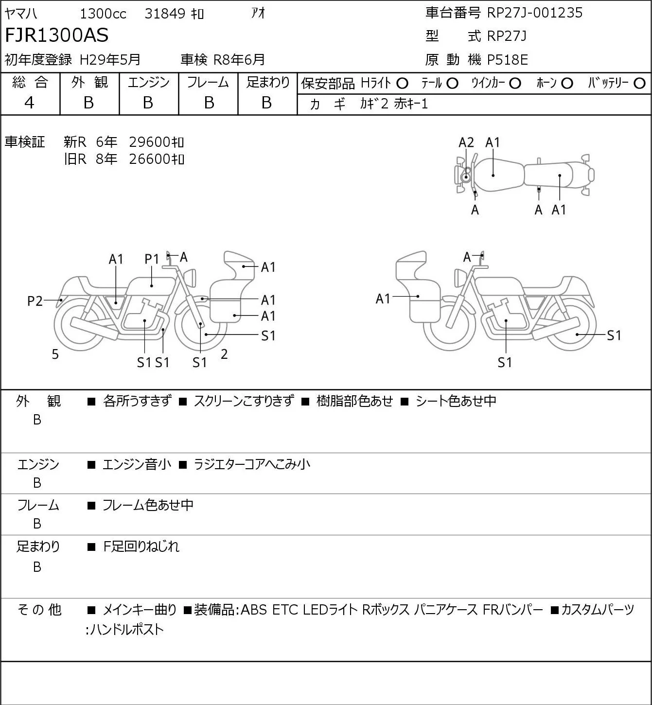 Yamaha FJR1300AS с аукциона Японии JBA Kobe (Tuesday) лот № 5020
