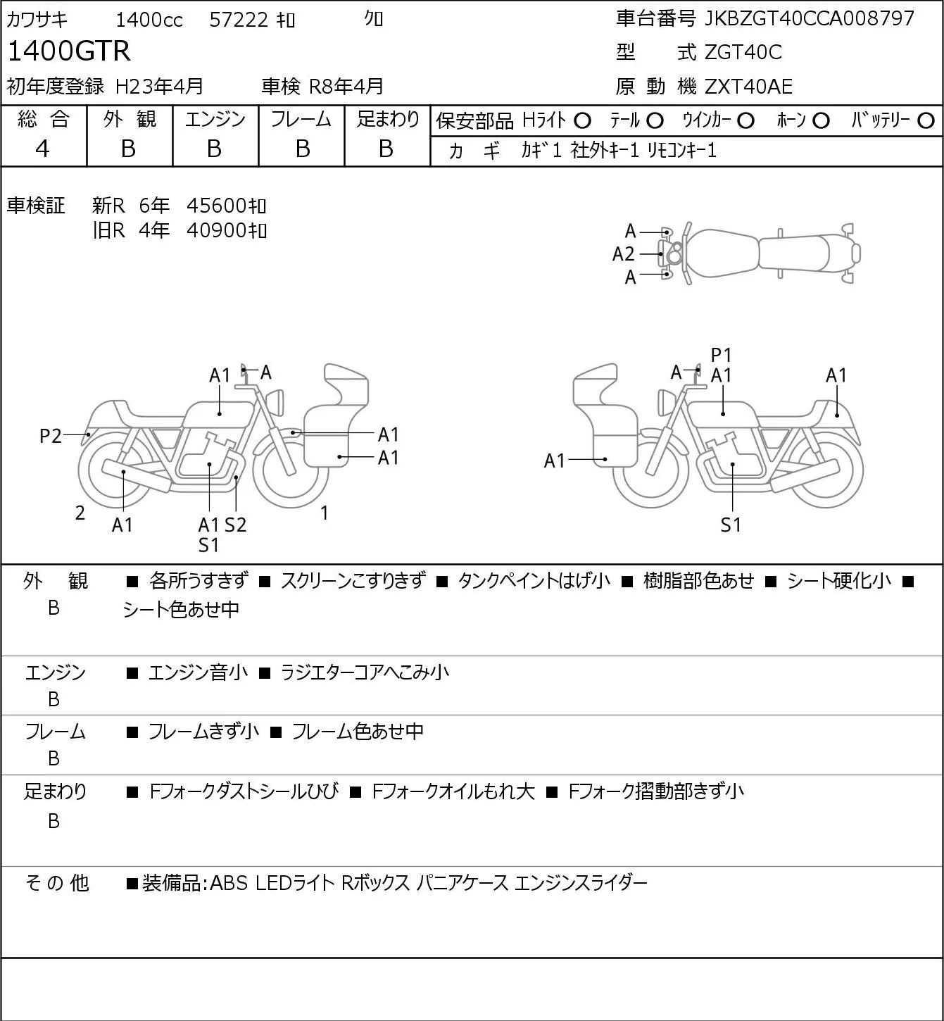 Kawasaki 1400GTR с аукциона Японии JBA Kobe (Tuesday) лот № 5488