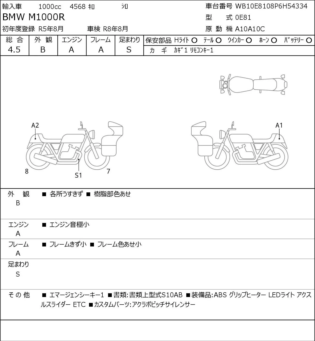 BMW M1000R с аукциона Японии JBA Kobe (Tuesday) лот № 5617