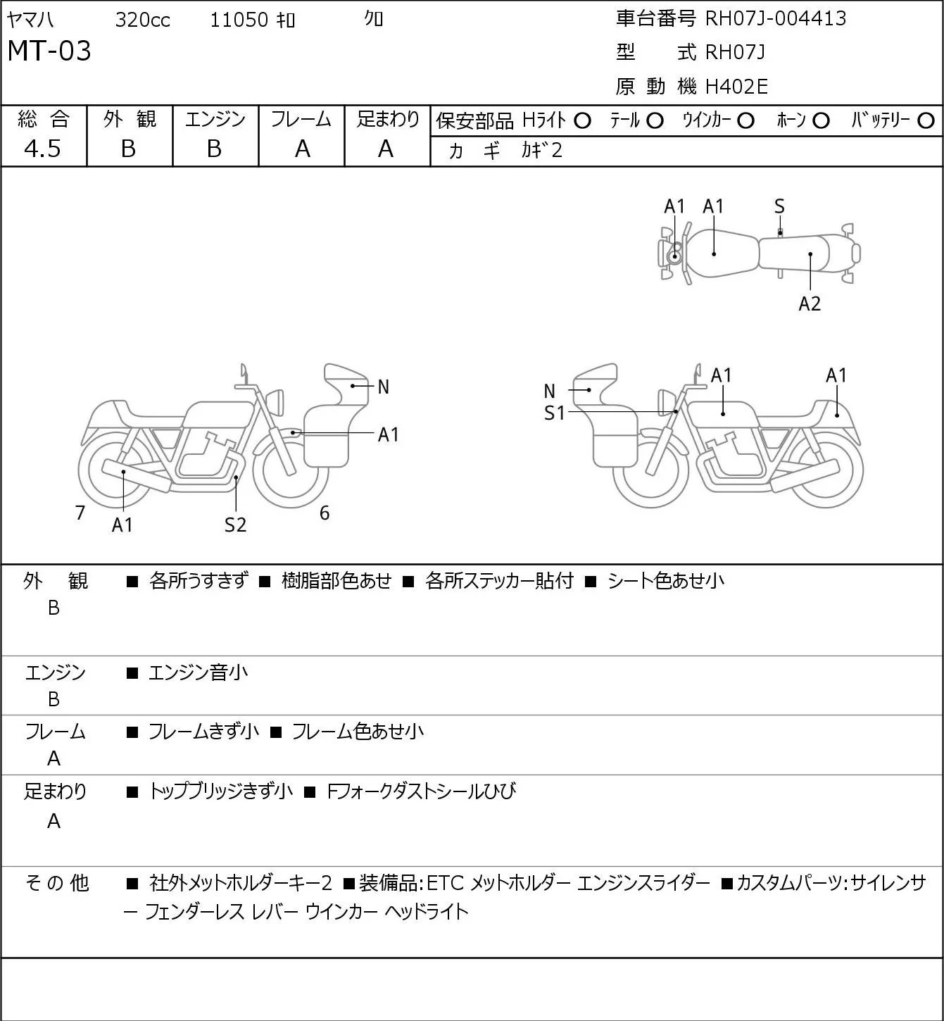Yamaha MT-03 с аукциона Японии JBA Kobe (Tuesday) лот № 5733