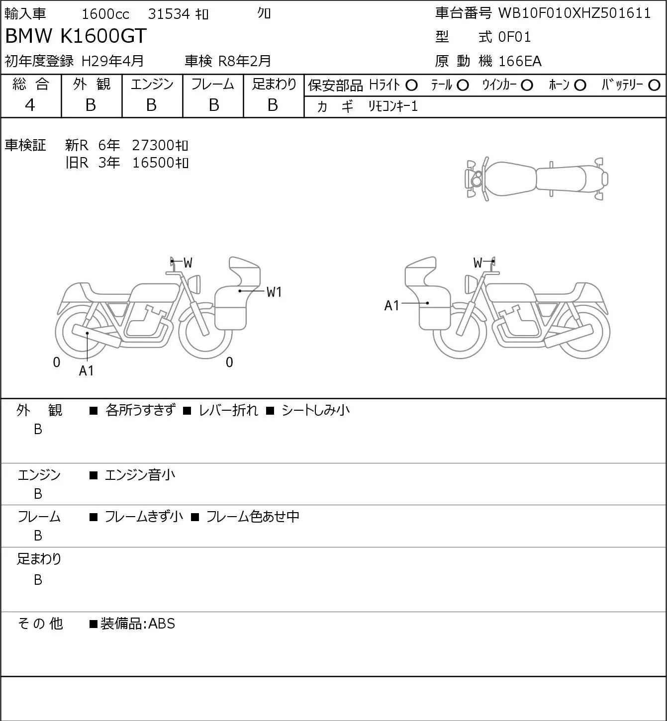 BMW K1600GT с аукциона Японии JBA Yokohama (Friday) лот № 7070