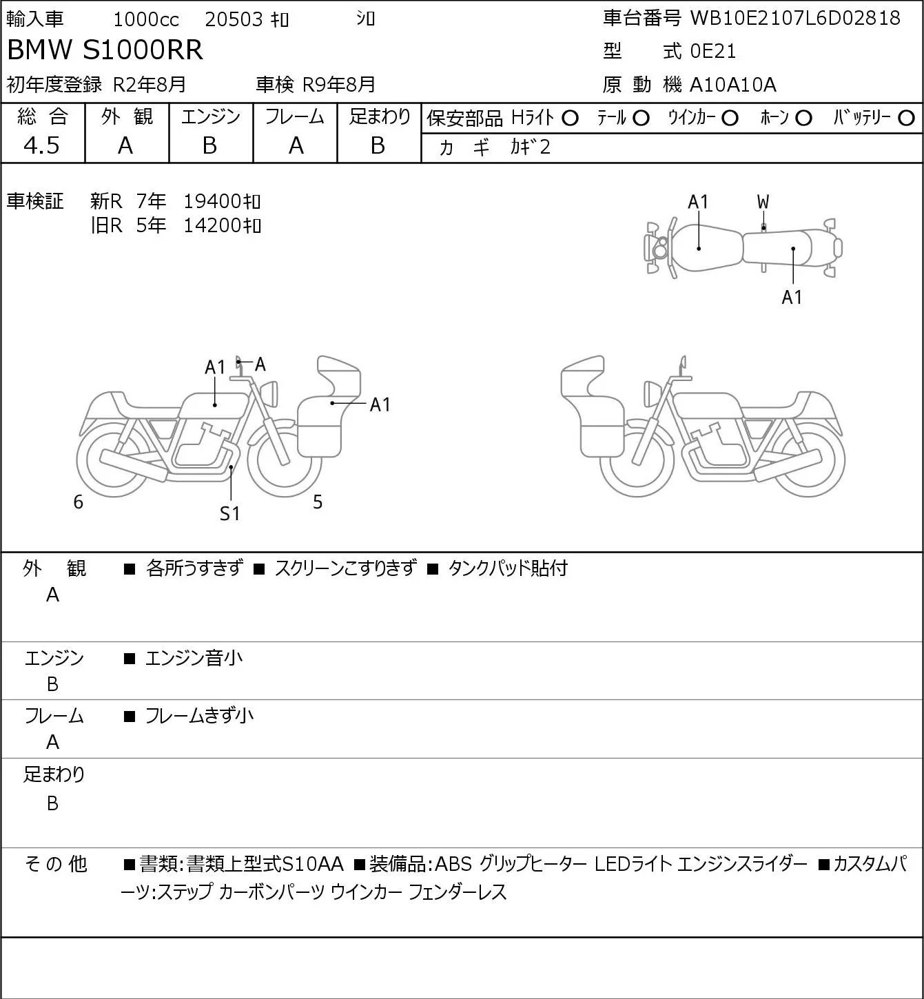 BMW S1000RR с аукциона Японии JBA Yokohama (Friday) лот № 7234