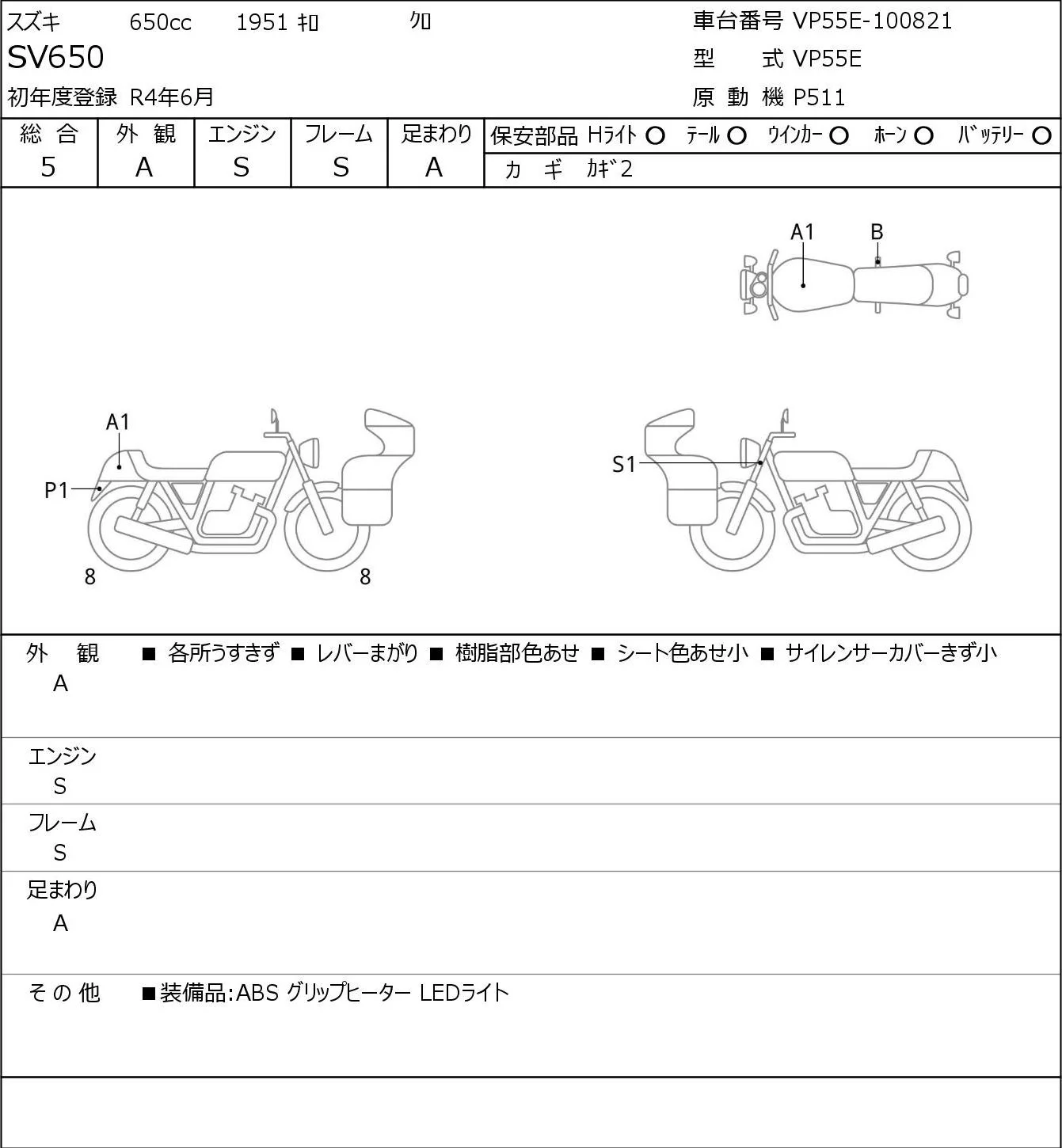 Suzuki SV650 с аукциона Японии JBA Kobe (Tuesday) лот № 5316