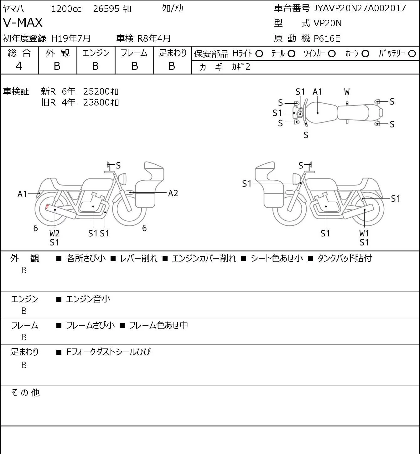 Yamaha V-MAX с аукциона Японии JBA Yokohama (Friday) лот № 8060