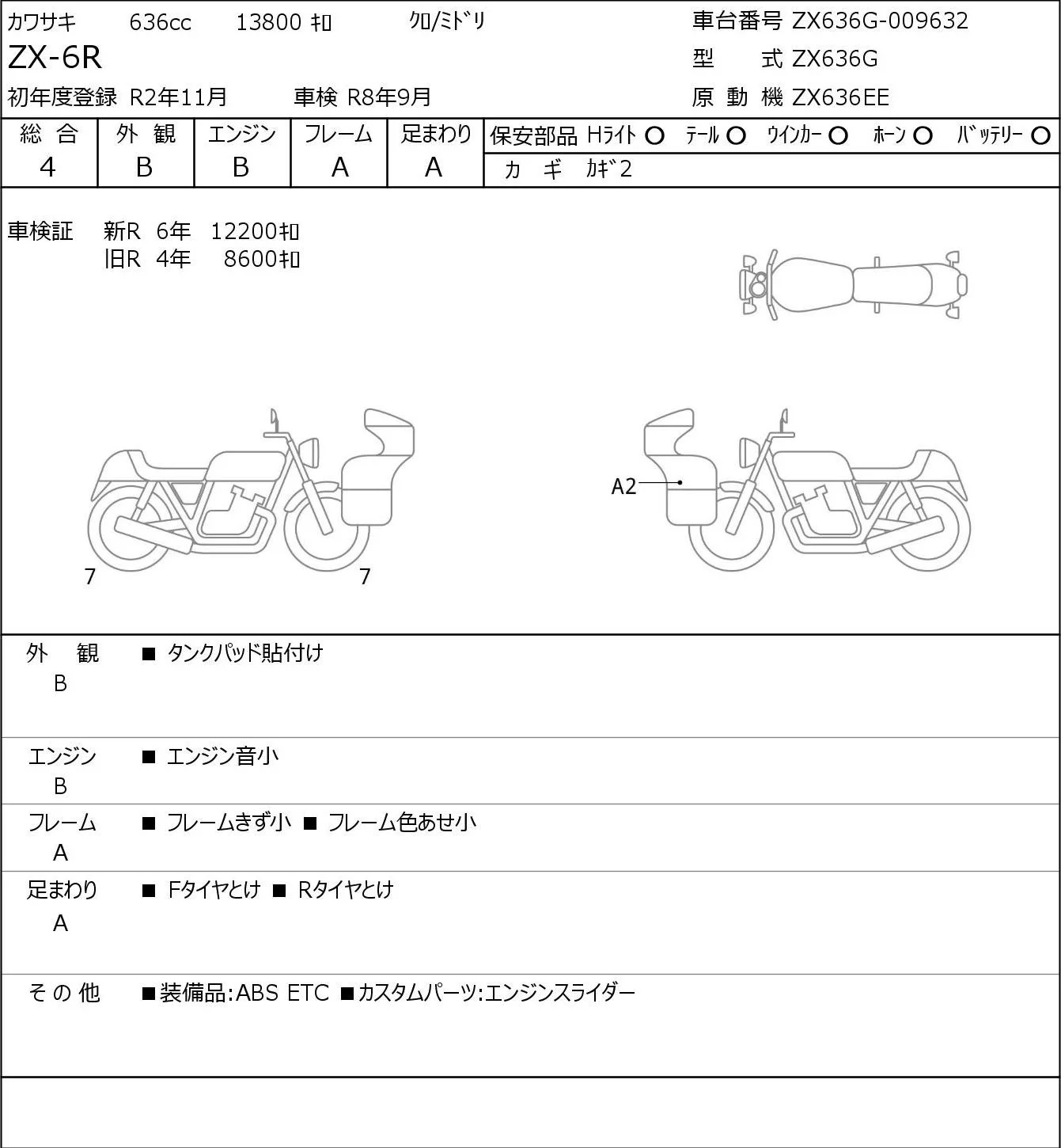 Kawasaki ZX-6R с аукциона Японии JBA Yokohama (Friday) лот № 8096