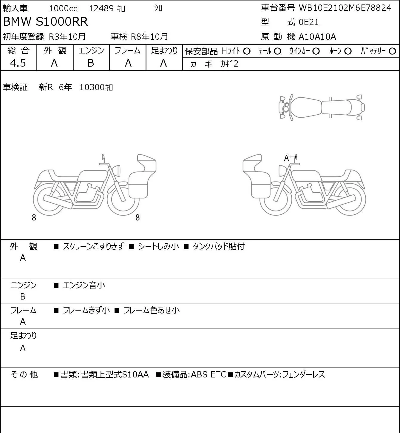 BMW S1000RR с аукциона Японии JBA Yokohama (Friday) лот № 7217