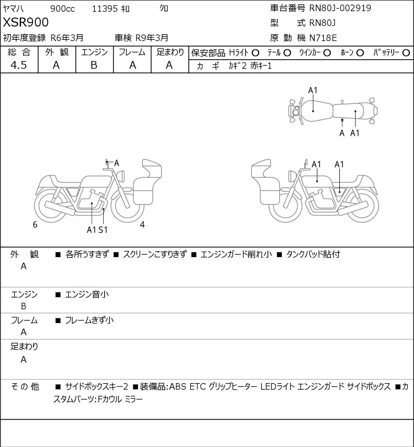 Yamaha XSR900 с аукциона Японии JBA Kobe (Tuesday) лот № 5286