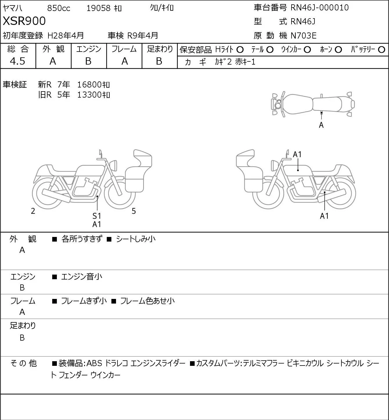 Yamaha XSR900 с аукциона Японии JBA Kobe (Tuesday) лот № 5394
