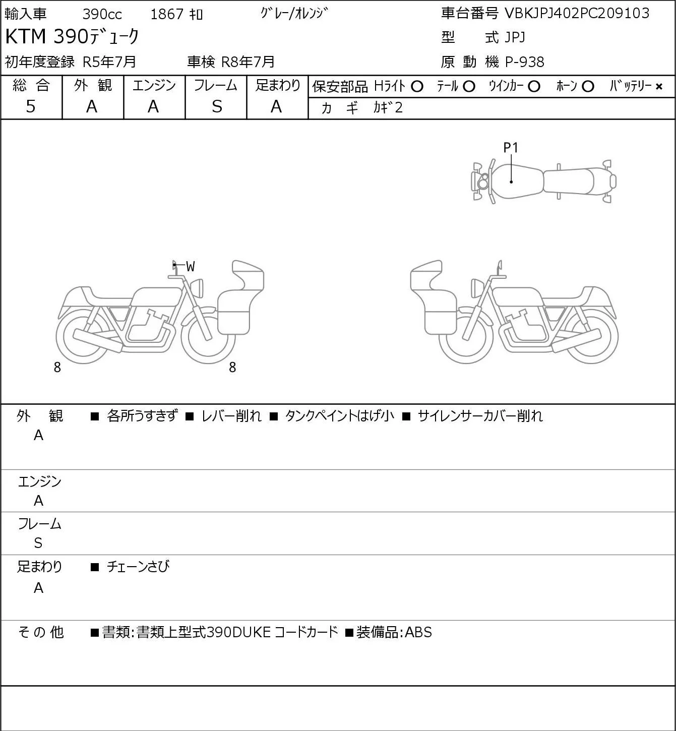 KTM 390 DUKE с аукциона Японии JBA Yokohama (Friday) лот № 7169
