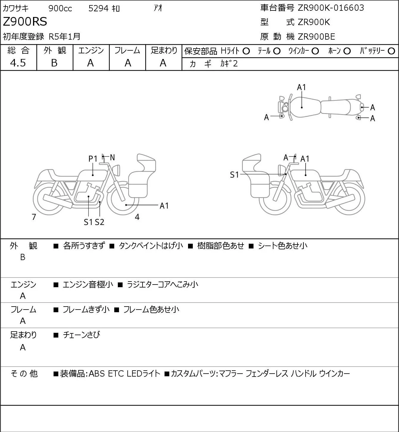 Kawasaki Z900RS с аукциона Японии JBA Kobe (Tuesday) лот № 5311