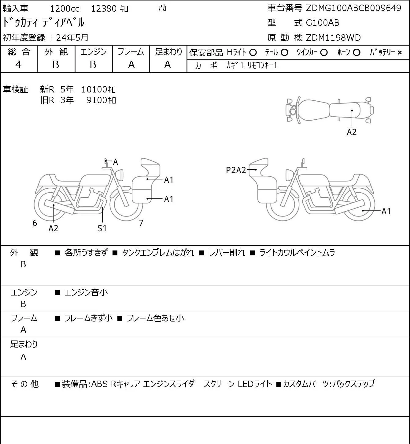 Ducati DIAVEL с аукциона Японии JBA Kobe (Tuesday) лот № 5581