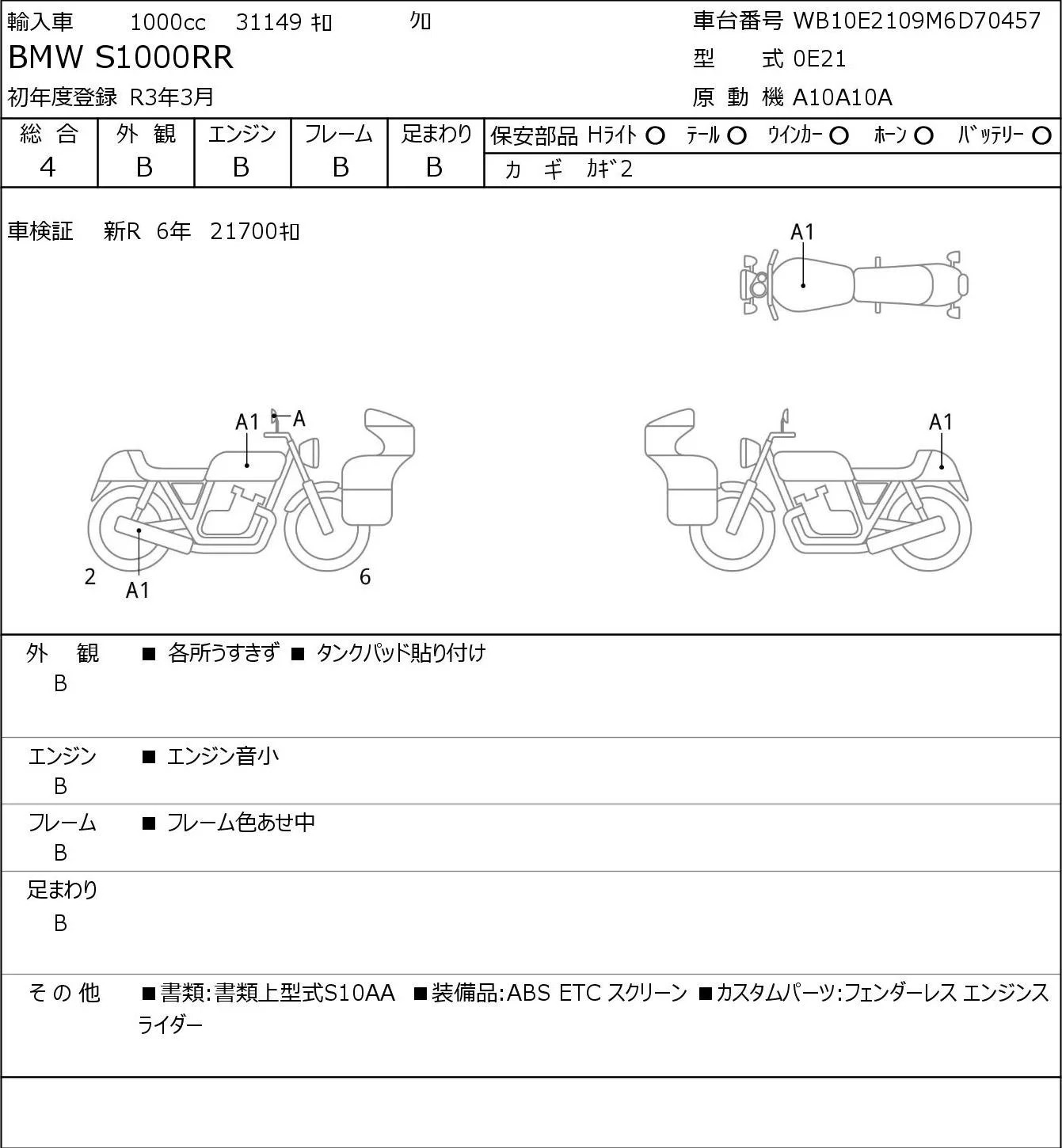 BMW S1000RR с аукциона Японии JBA Yokohama (Friday) лот № 8047